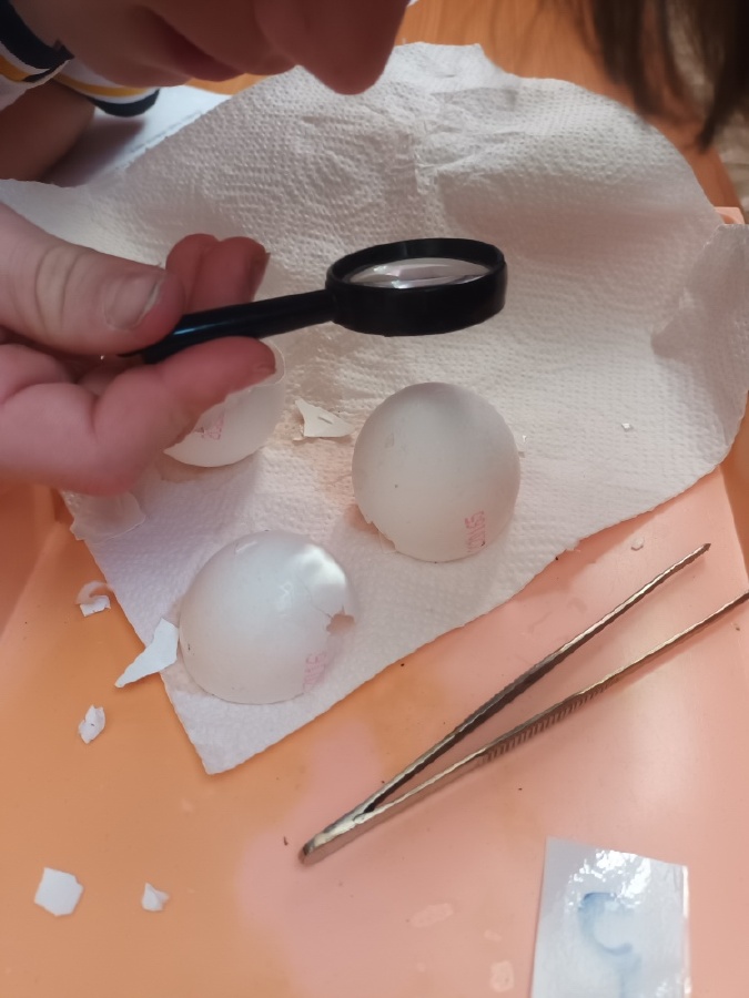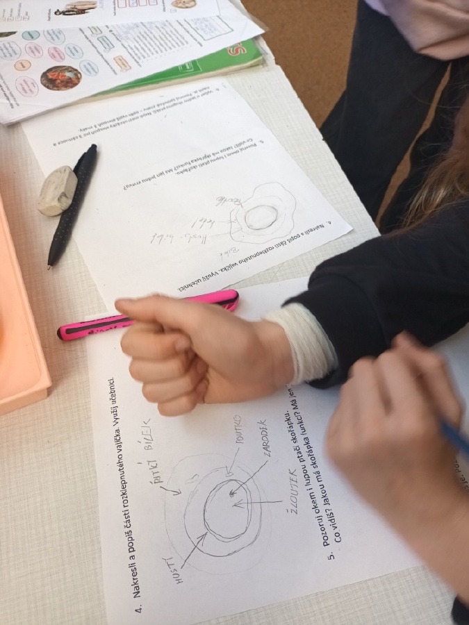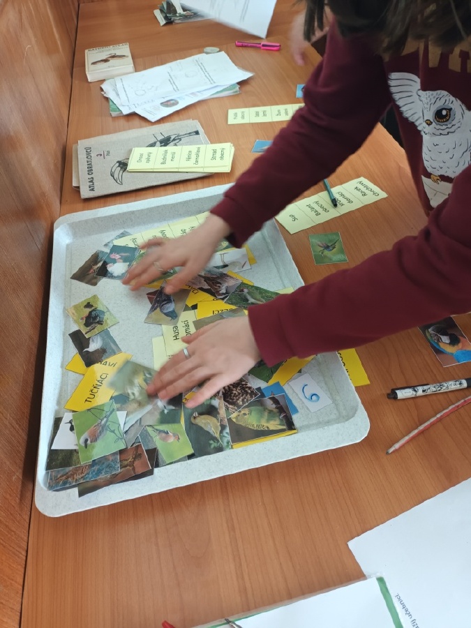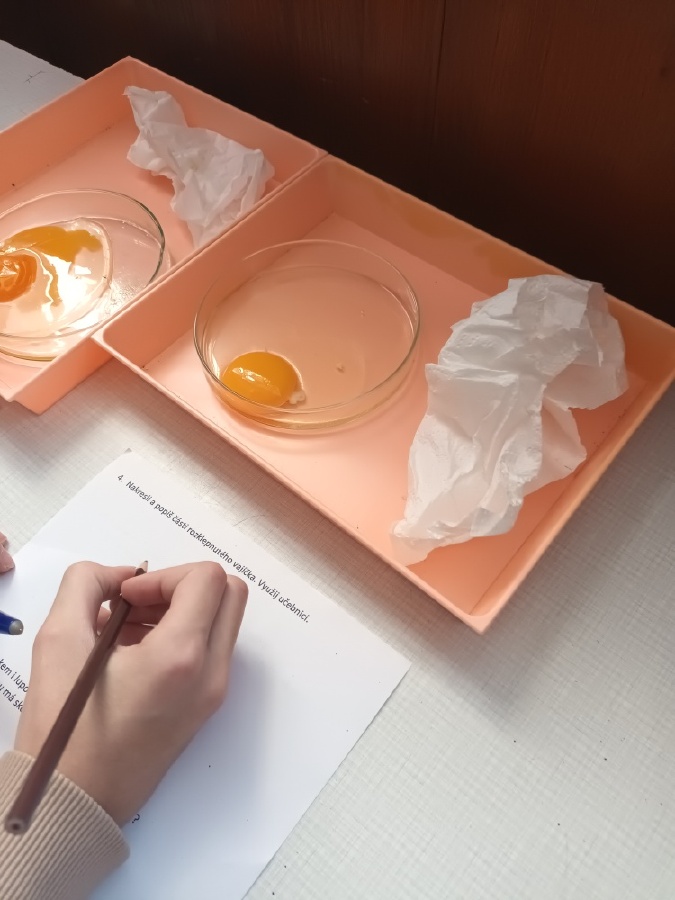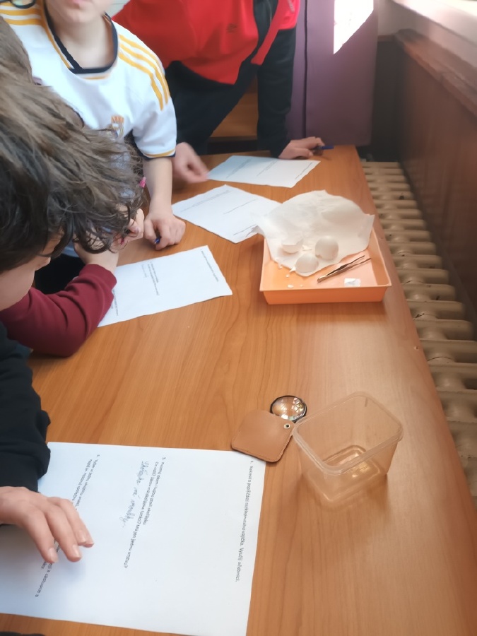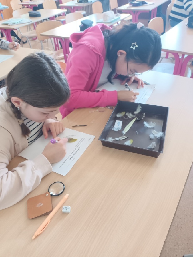 V rámci laboratorní práce na téma ptáci žáci 7.ročníků objevovali tajemství stavby ptačího peří a vejce. Pomocí mikroskopů zkoumali strukturu ptačího peří a pomocí lupy skořápku vejce i jeho vnitřní stavbu. Žáci se také učili poznávat různé druhy ptáků podle jejich charakteristických znaků. Výsledky pozorování a určování si zaznamenávali do svých protokolů a vzájemně ověřovali jejich správnost s pomocí literatury a dostupných zdrojů.