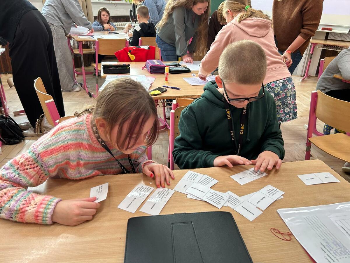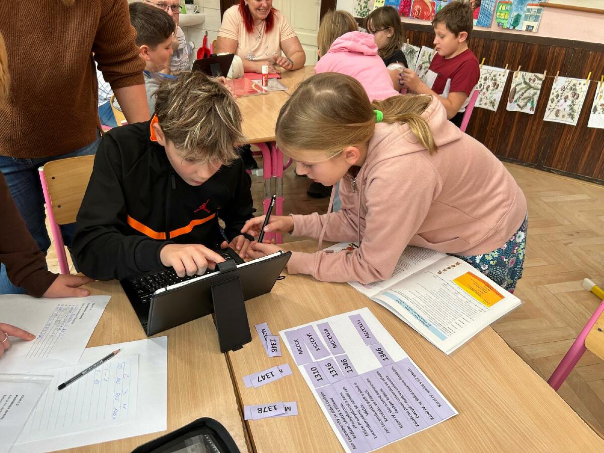 V další části programu jsme se zaměřili na vyhledávání informací v knihách. Děti se naučily, jak efektivně najít potřebné informace o Karlu IV. a jeho době. Každá skupina také vyluštila tajenku a složila domino.
