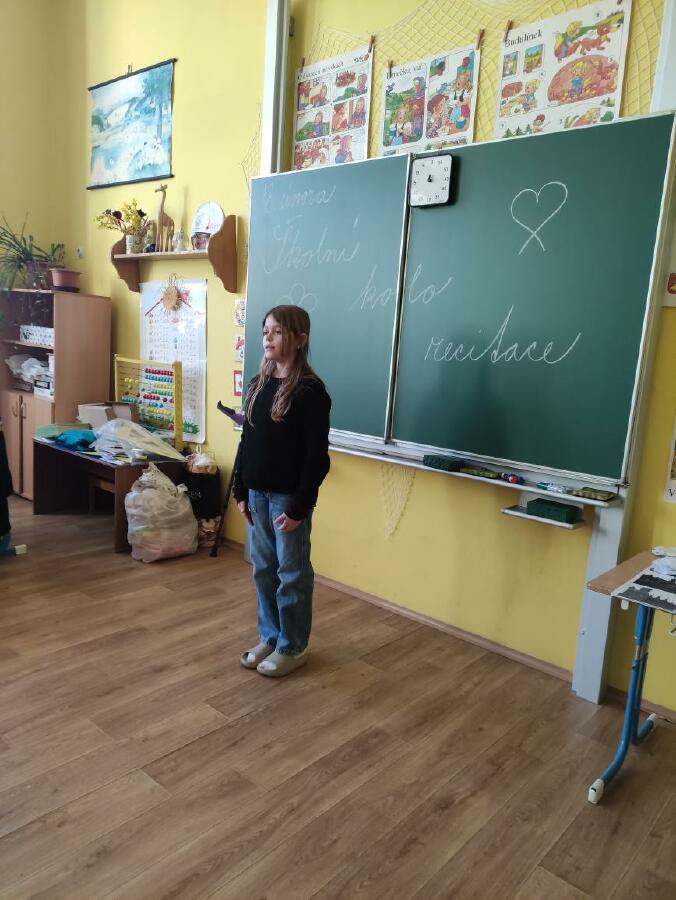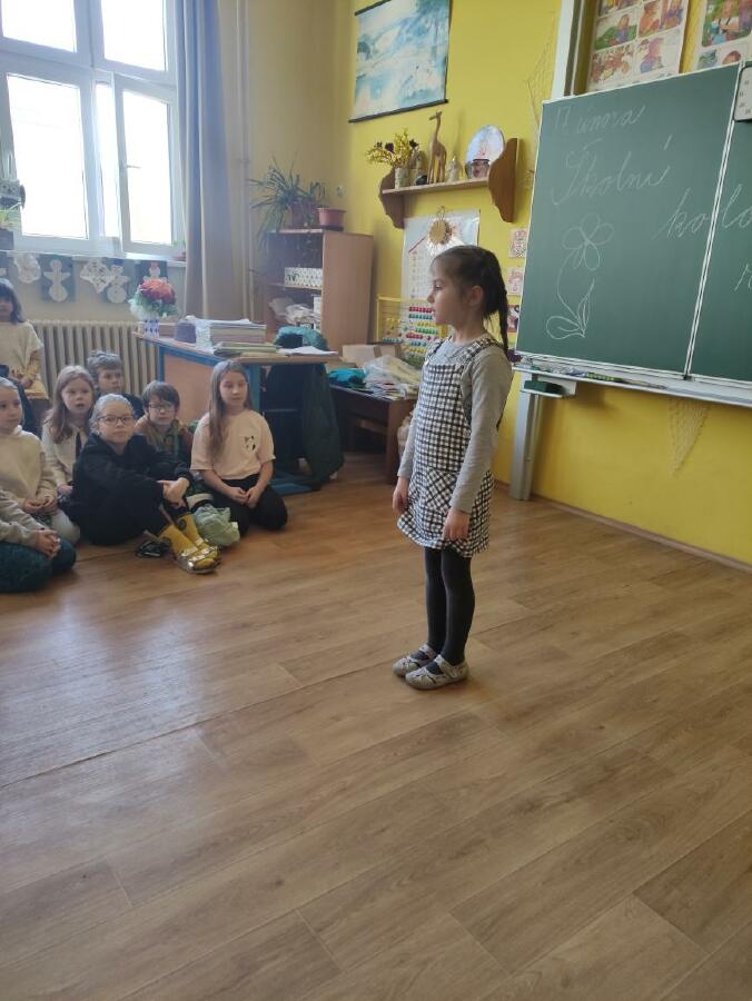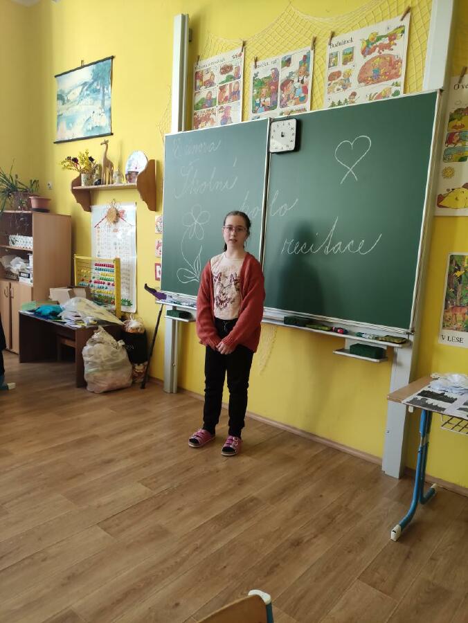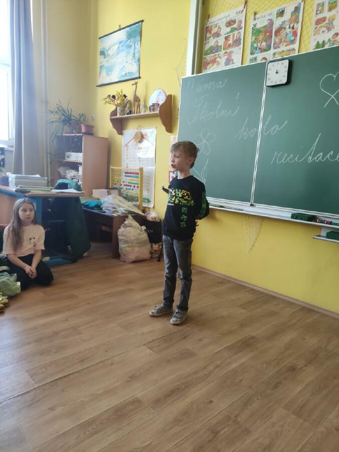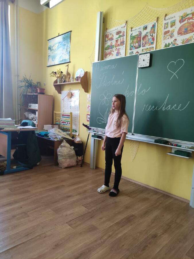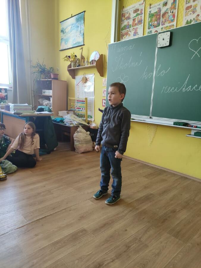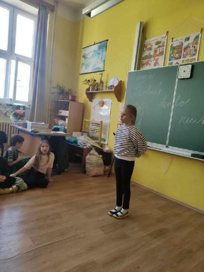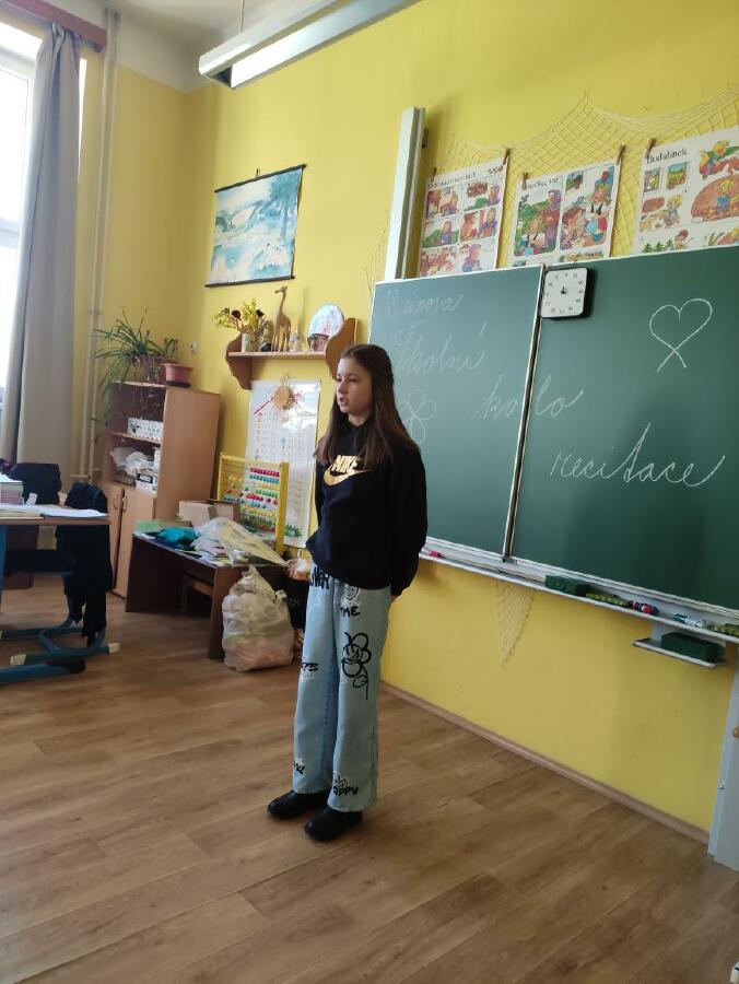 Dne 17. a 18. února se na naší škole konala recitační soutěž pro žáky prvního stupně. Soutěž si na zkoušku vyzkoušeli i naši prvňáčci. Měli moc pěkné básničky a bez ostychu se o ně s námi podělili. Moc se jim to povedlo.