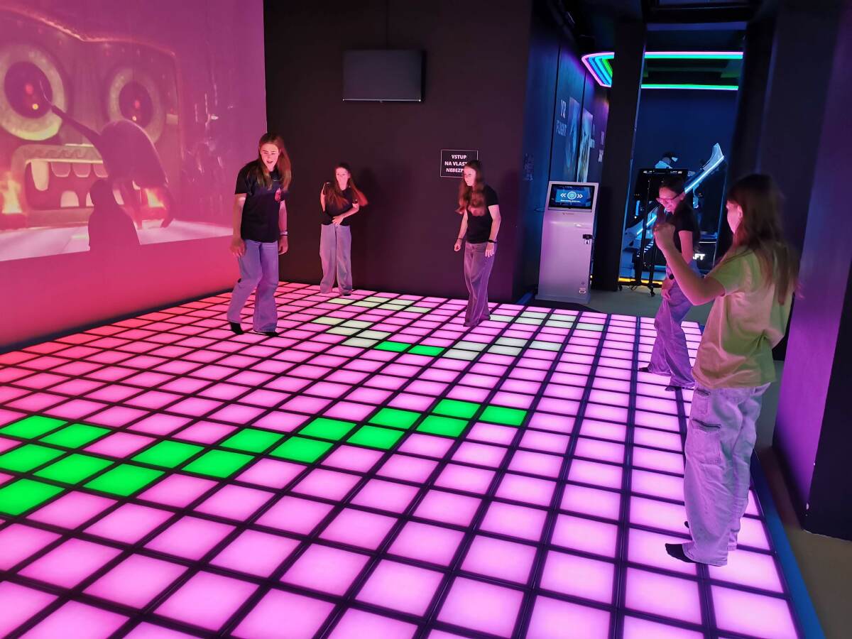 Dne 27. května se třída 7. C vydala na školní výlet do IQ parku Ideon v Pardubicích. Zde jsme si mohli vyzkoušet nejrůznější simulátory a prvky virtuální reality. K dispozici byla například jízda na motocyklu a autem, let na drakovi, golf, střelba na koš a na fotbalového a hokejového brankáře. Bylo možné si vyzkoušet letecký souboj, lov na divočáky, šplhání po stěně, biatlon a průlety nejrůznějšími krajinami (i hororovými) a to i hlavou dolů. Velký úspěch pak měly interaktivní nášlapné různobarevné dlaždice. Vše probíhalo k naší spokojenosti, včetně dopravy a asi největším zádrhelem byly praskající nadité papírové tašky od Kentucky Jacka.