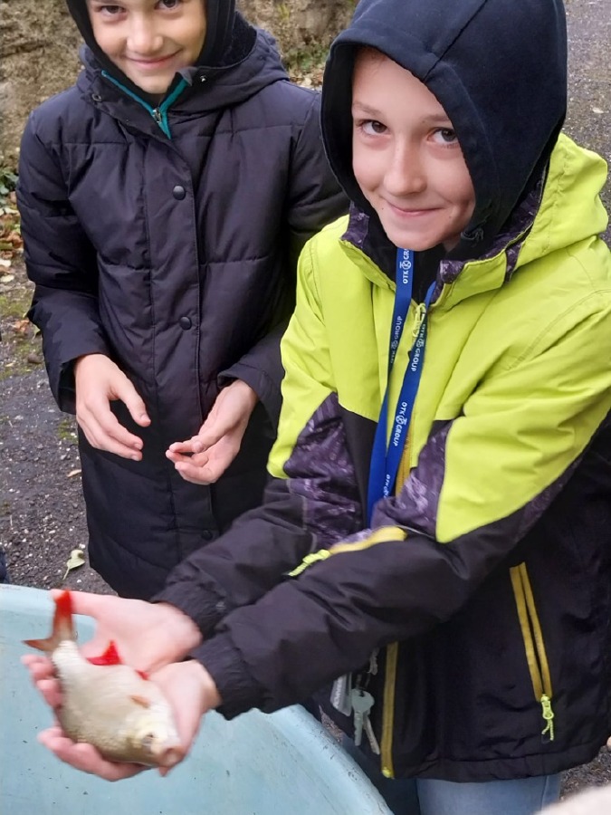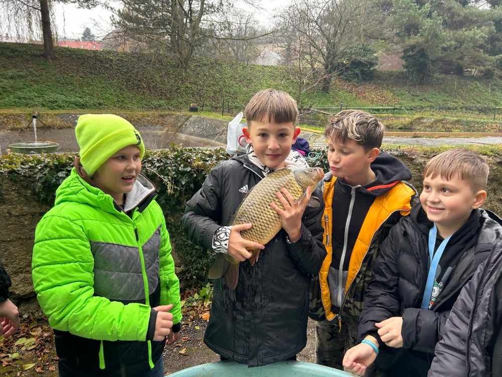 Děti si prohlédly kapra, který je jednou z nejznámějších ryb v českých rybnících. Je oblíbený jak pro svou chuť, tak pro sportovní rybolov. Dále okouny, líny, sumečky…