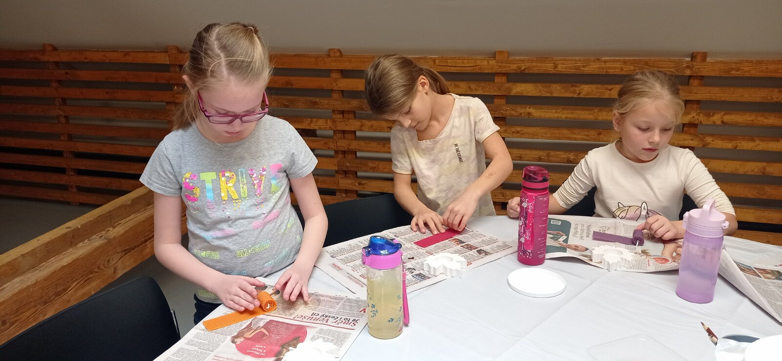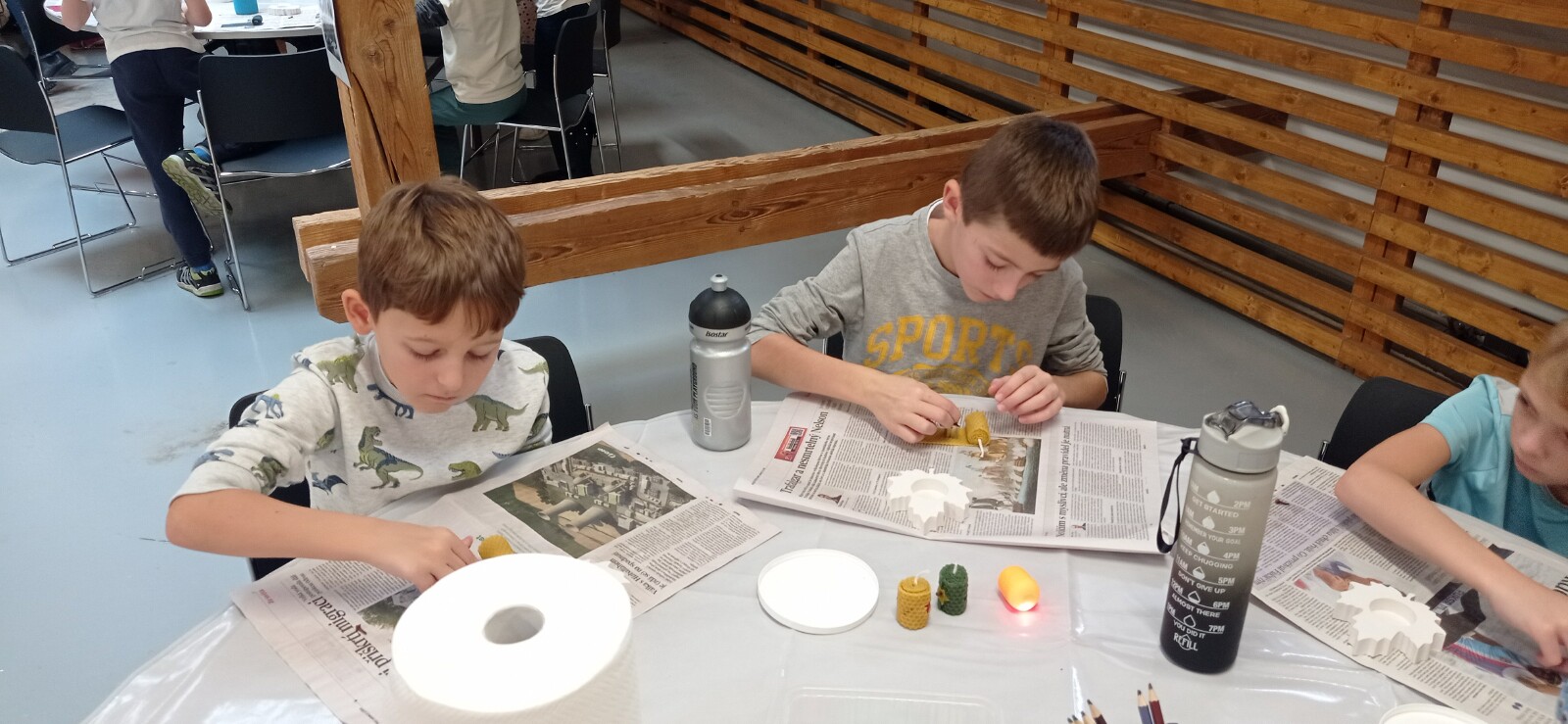Součástí programu byla výroba několika výrobků. Každý žák si vyrobil svíčku ze včelího vosku, svícen na čajovou svíčku a barevné světýlko.