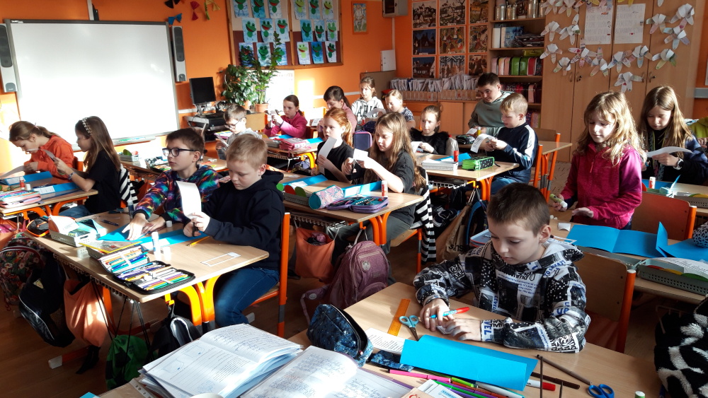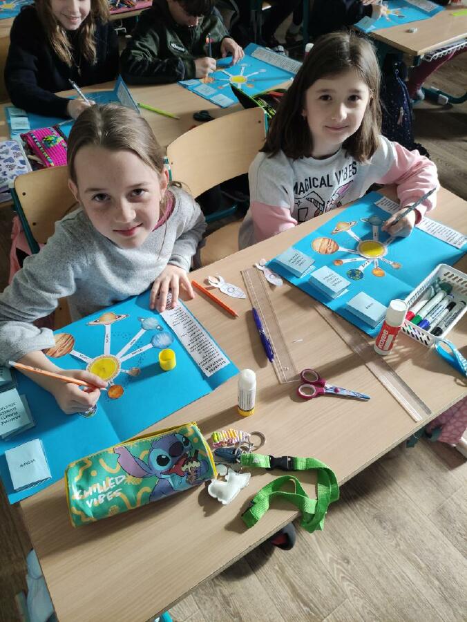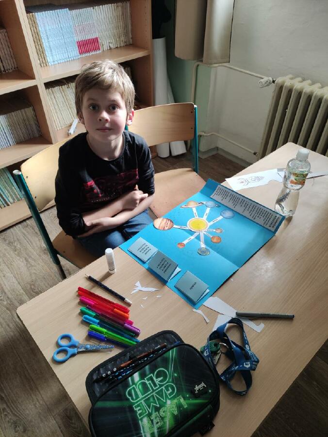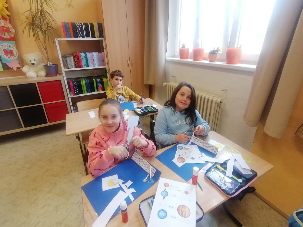 Velmi zajímavý projektový den pomohl žákům 3. ročníku zopakovat a upevnit probrané učivo o vesmíru. V průběhu dopoledne si děti postupně tvořily vesmírný lapbook. Při jeho výrobě si vyzkoušely základní knihařské postupy – rýsování, rýhování, výrobu klop a desek. V samém závěru proběhla týmová vědomostní soutěž Riskuj, která prověřila kvalitu získaných vědomostí. Žáci si projektový den pořádaný spolkem Pod horami užili a už se těší na další, který bude tentokrát zaměřený na včely.