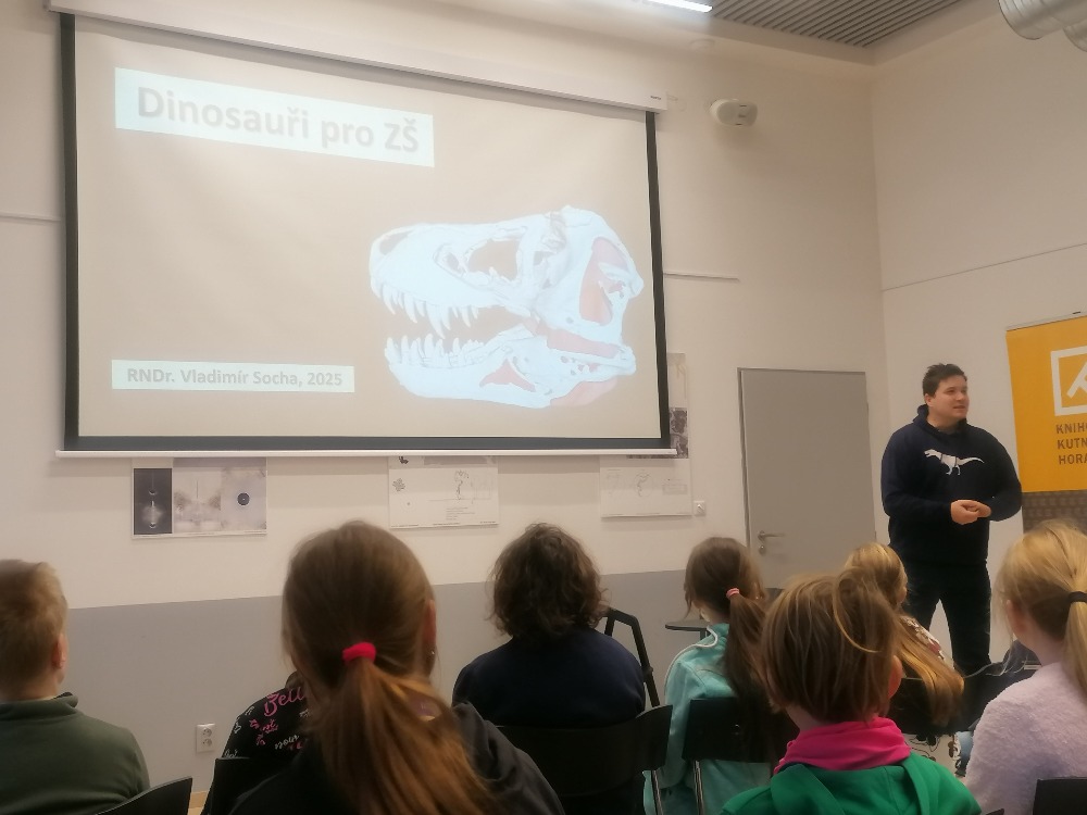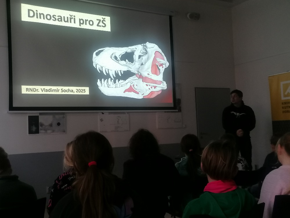 V úterý 21. ledna se třetí třídy společně vydaly do městské knihovny. Tam je čekala zajímavá přednáška známého publicisty a popularizátora paleontologie p. Vladimíra Sochy, jehož největším zájmem jsou dlouhodobě druhohorní dinosauři. Díky skvělé přednášce jsme byli provedeni úchvatným světem tvorů, kteří obývali naši planetu před miliony let.