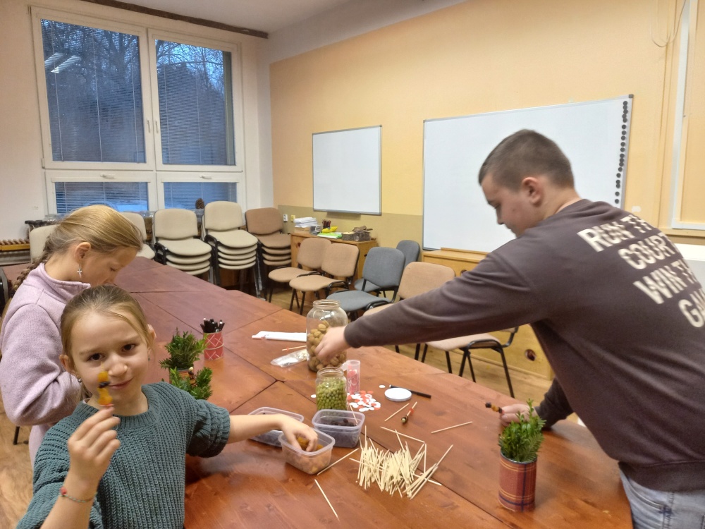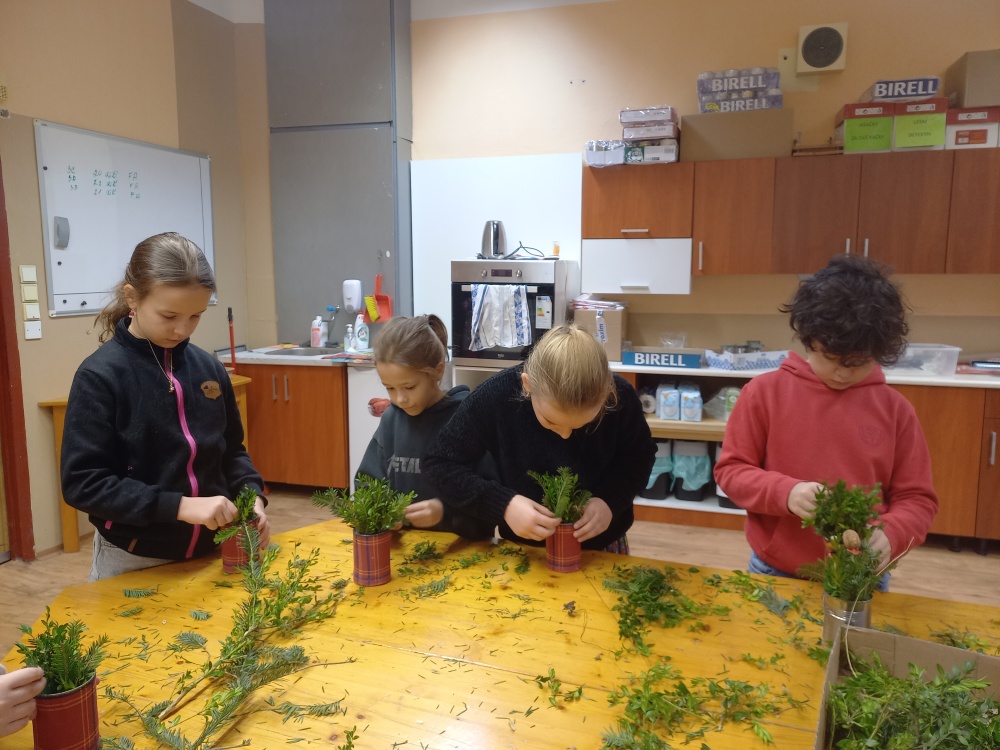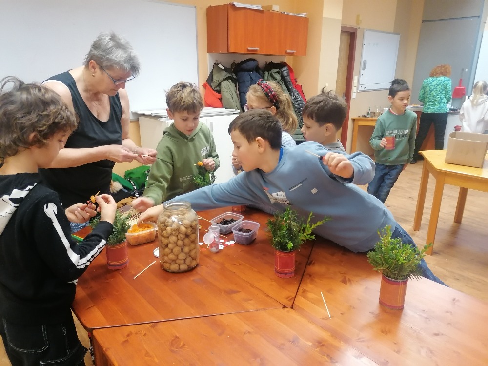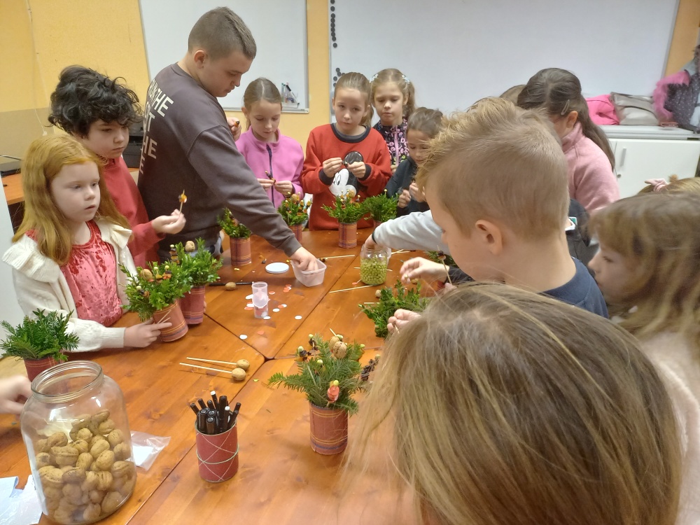 Vánoční dílnička byla zaměřena na tradiční předměty, které se po staletí vyráběly v adventním čase. Děti se vrátily do dob, kdy se na výzdobu i hračky využily přírodní materiály. Vyrobily si tradiční vánoční vrkoč.