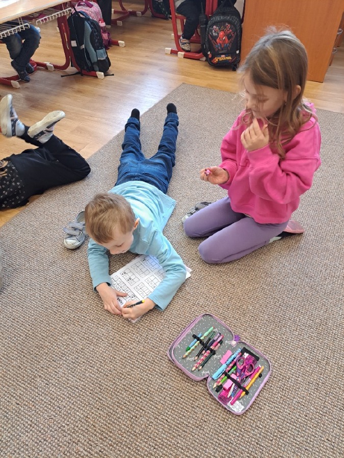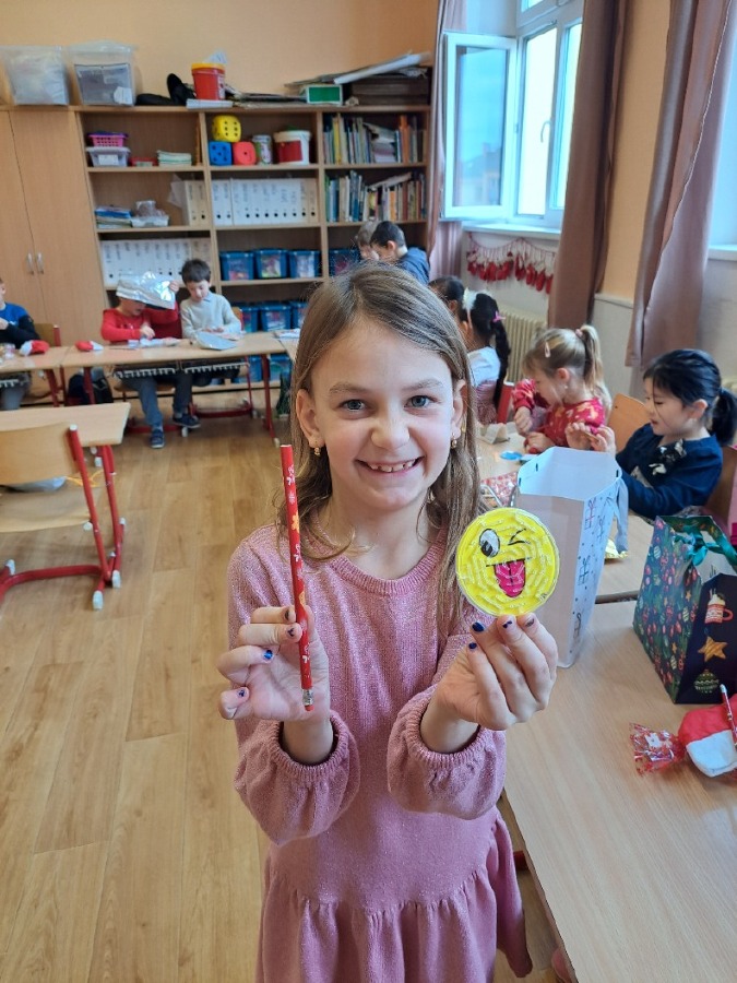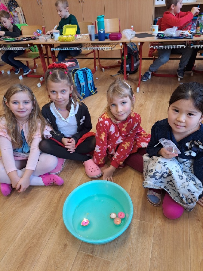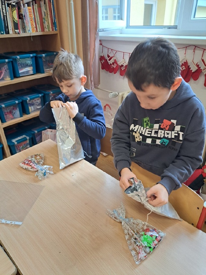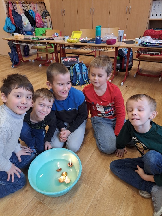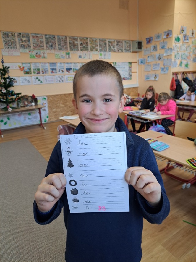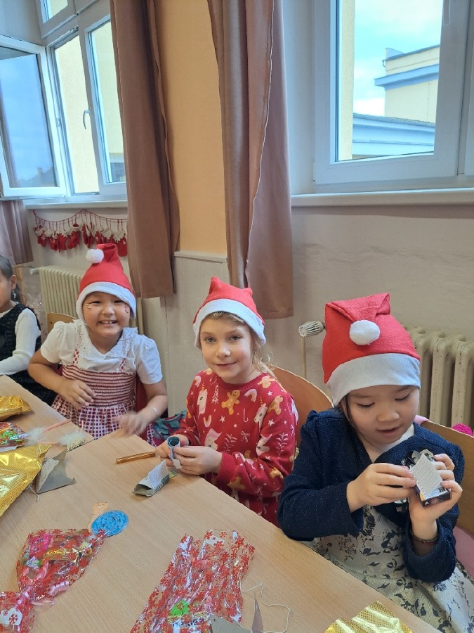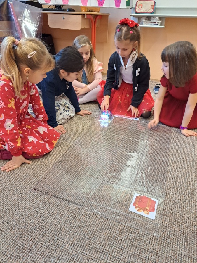 Poslední dva dny před vánočními prázdninami jsme vyplnili speciálními vánočními aktivitami - stavěli jsme z kostek podle návodu, luštili tajná slova, programovali Blue-Boty, psali slabiky při běhacím diktátu, vyráběli Betlémy, vyzkoušeli několik vánočních tradic a nakonec jsme se radovali z dárečků od školního Ježíška.