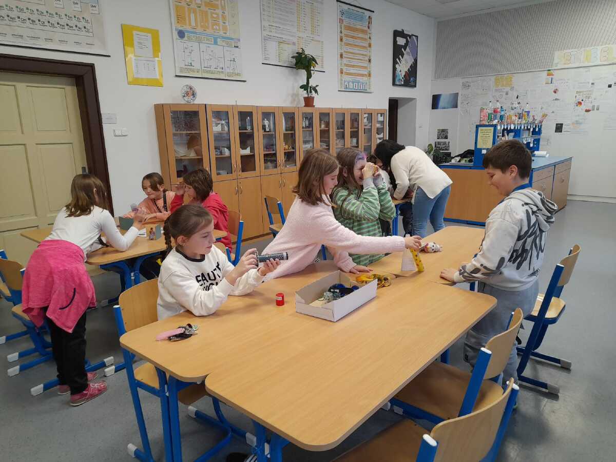 Družinové děti navštívily v tomto týdnu opětovně učebnu fyziky a chemie. Přišly se podívat na učebnu II.stupně, kam budou za pár měsíců chodit na výuku těchto předmětů. Paní učitelka Červená si pro ně připravila několik stanovisť s fyzikalními pomůckami. Pomocí nich děti prozkoumaly řadu zajímavých oblastí fyziky a zjistily, že se vůbec nejedná o obávaný předmět. Některé děti se návštěvy učebny účastnily již podruhé, příjemným zjištěním pro vyučující bylo, že si některé aktivity pamatovaly a dokázaly na ně navázat. Všem dětem hodně radosti v jejich bádání za poznání!