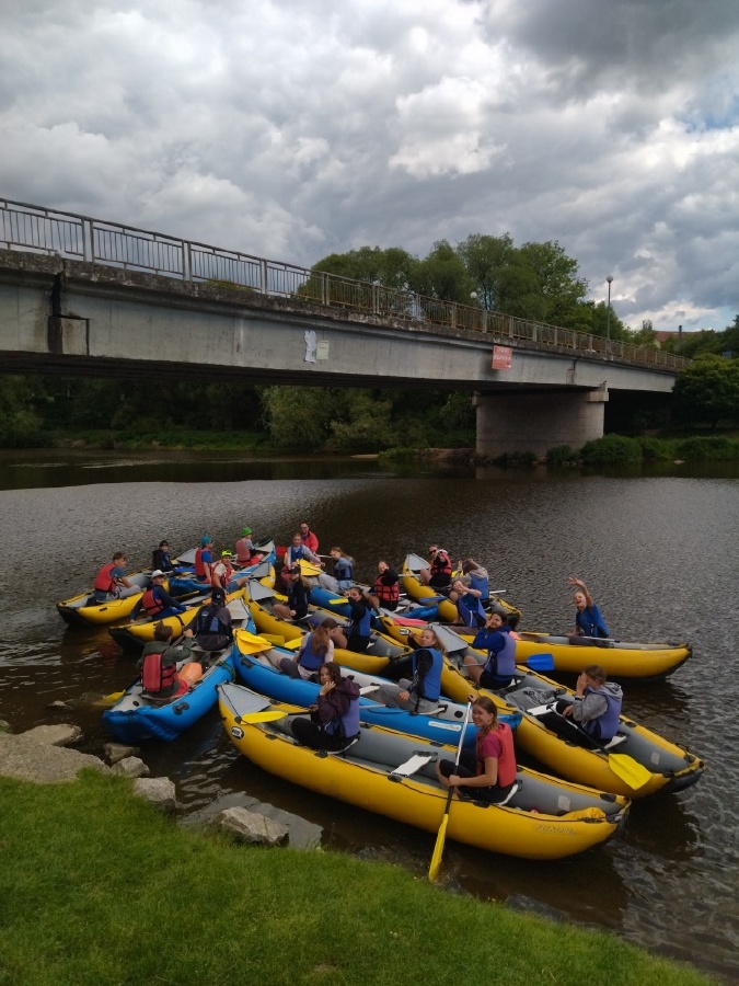 Poslední květnový týden se třída 8.A vydala na několikadenní vodácký kurz na střední úsek řeky Sázavy, aby zažila dobrodružství, která se z učebnic naučit nedají. Pod vedením učitelů se žáci učili ovládat kánoe, spolupracovat a překonávat překážky — ať už to byly sjízdné jezy, proměnlivé počasí, nebo nutnost postavit si stan v mírném dešti.