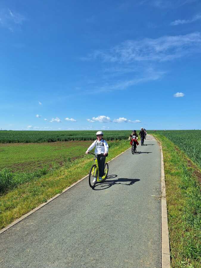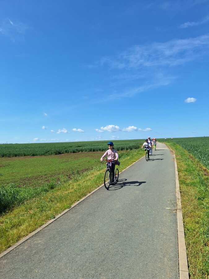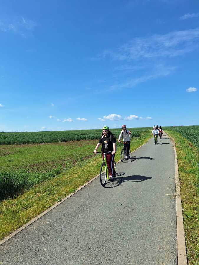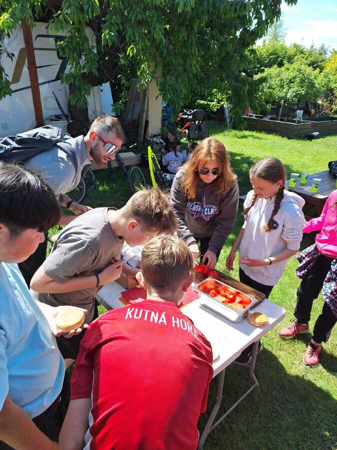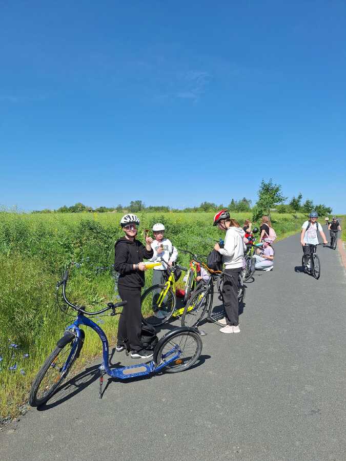 V pátek 23. května 2025 se žáci 6. ročníku vydali na koloběžkový výlet z Čáslavi do Vrdů a zpět. Cesta vedla krásnou krajinou a nabídla spoustu pohybu i zábavy. Ve Vrdech si děti samy připravily oběd – hamburgery, pizzu a palačinky. Společné vaření je bavilo a jídlo jim na čerstvém vzduchu obzvlášť chutnalo. Výlet si všichni užili a odvezli si spoustu zážitků.