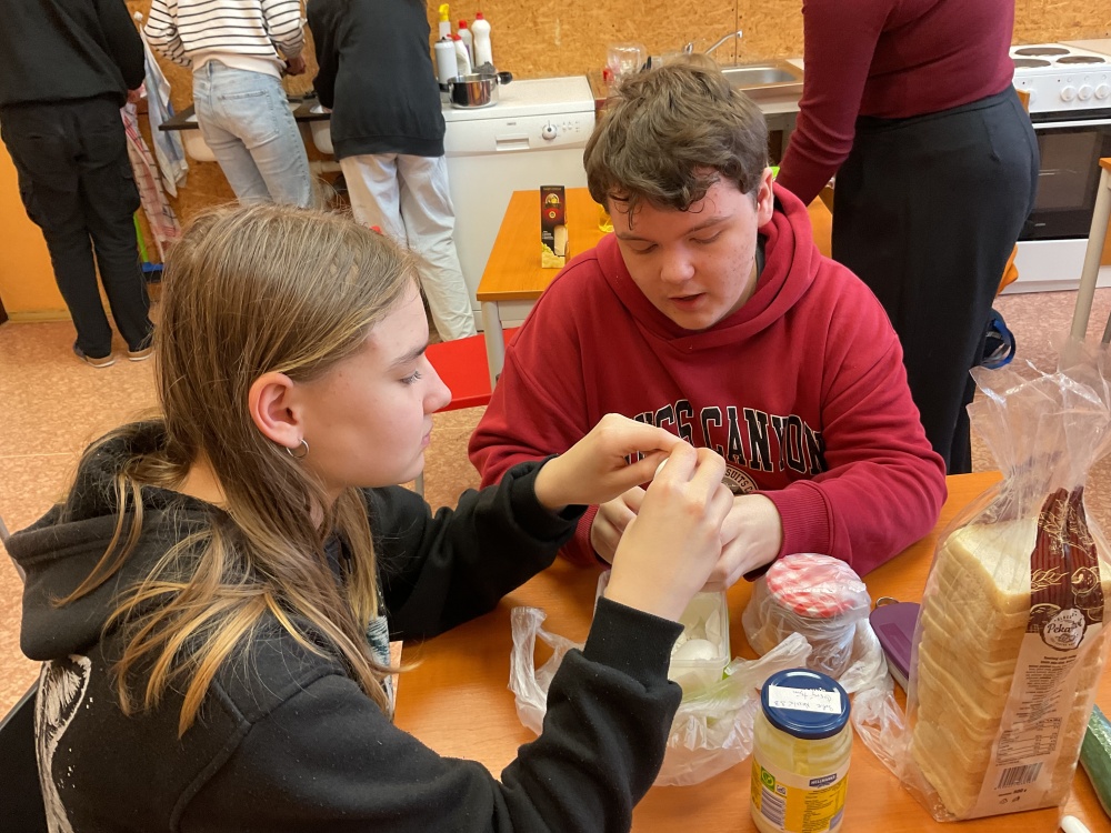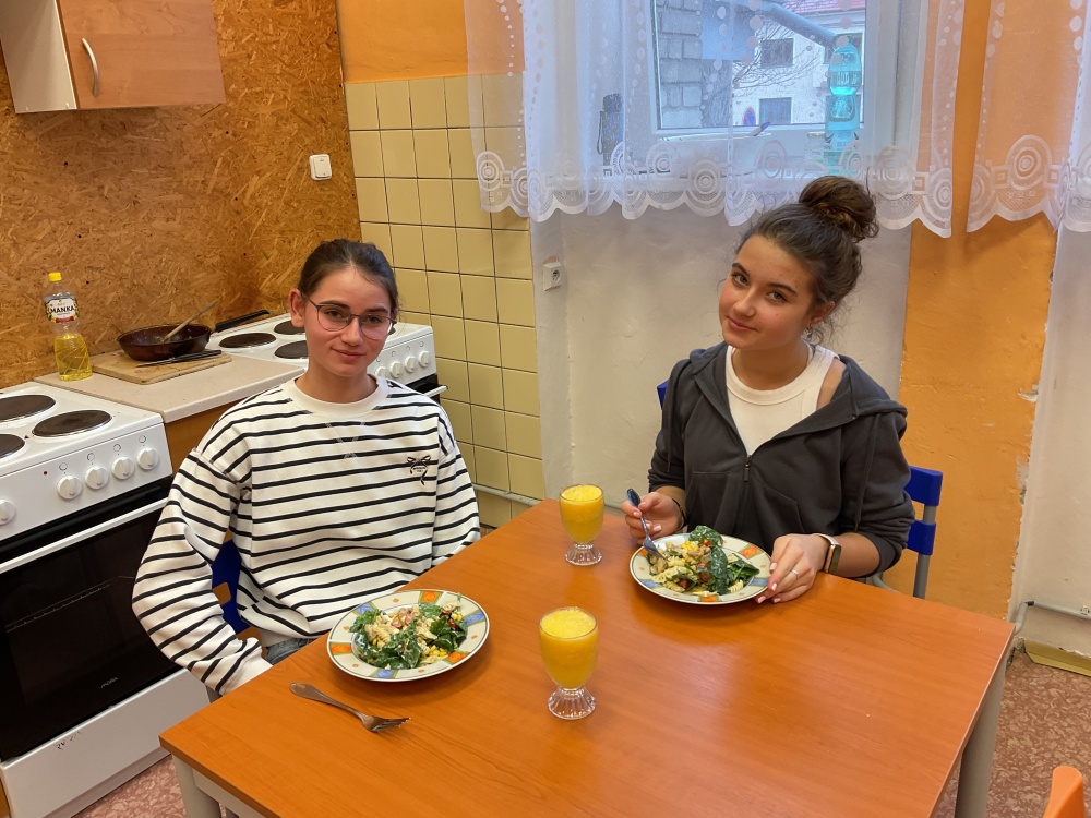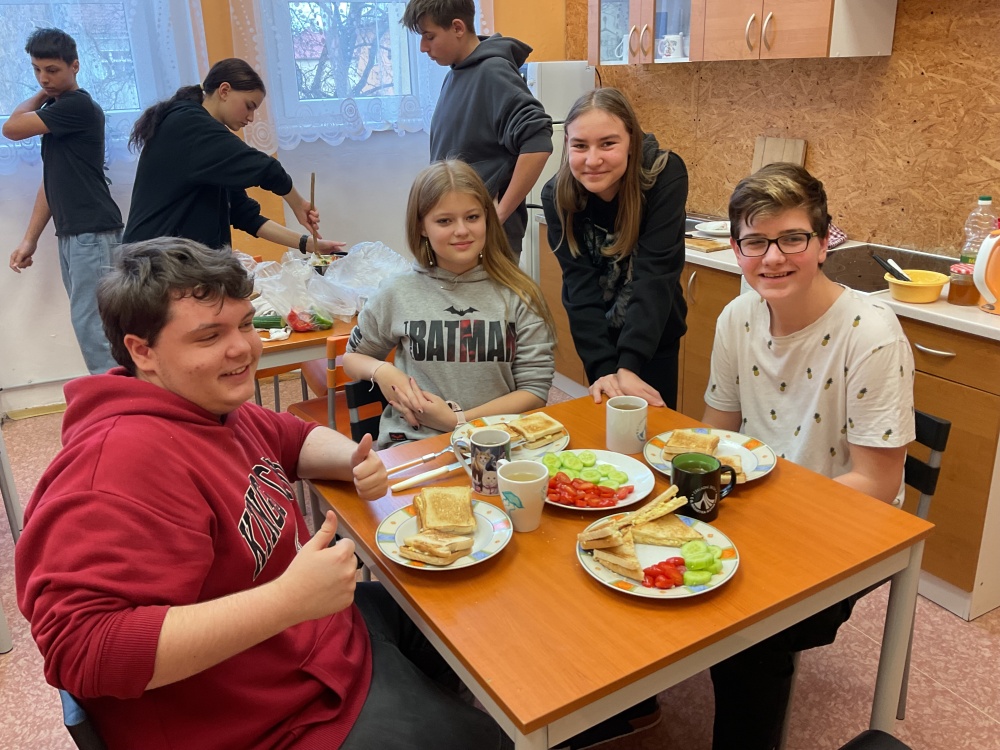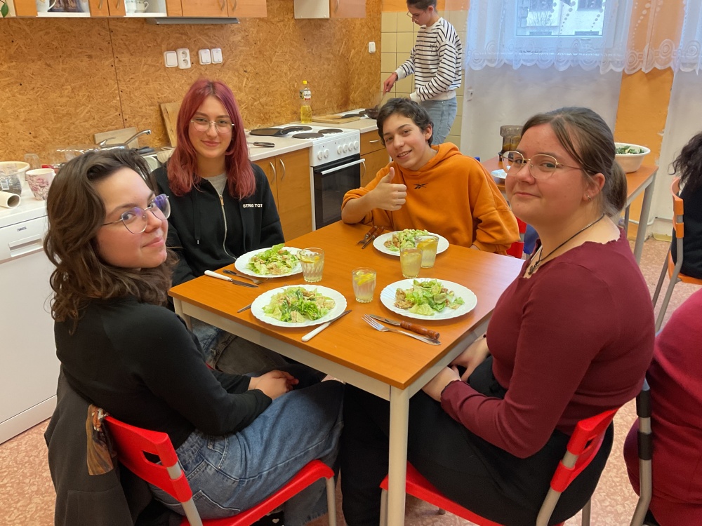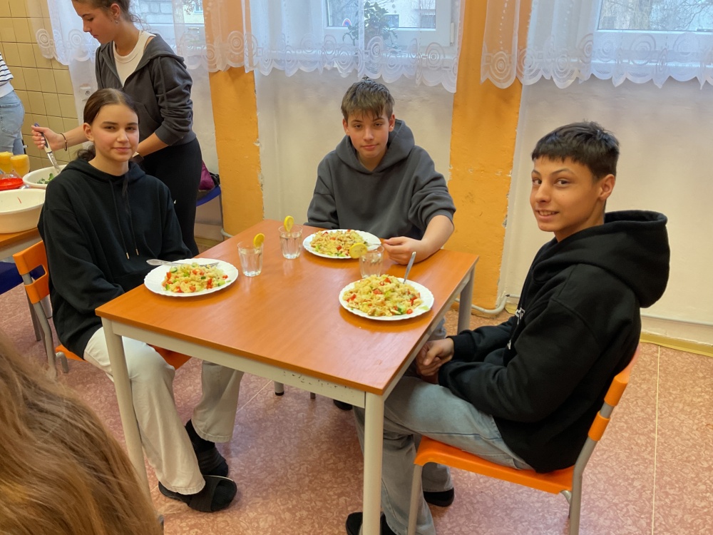 Tentokrát se žáci 8.B při hodině pracovních činností zaměřili na zdravé stravování. Připravili různá jídla ze studené i teplé kuchyně a snažili se dodržet zásady zdravého talíře. Hotová jídla všem moc chutnala.