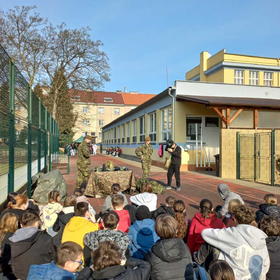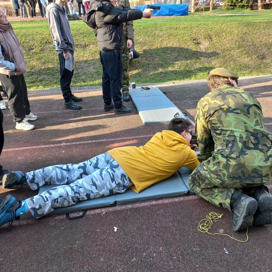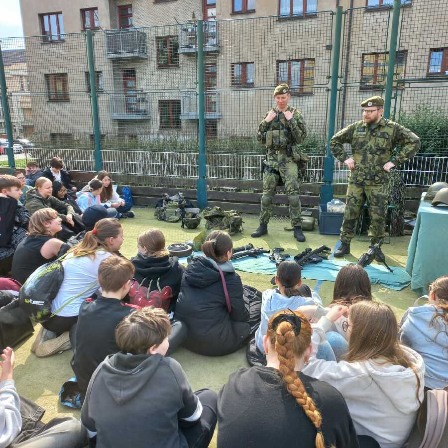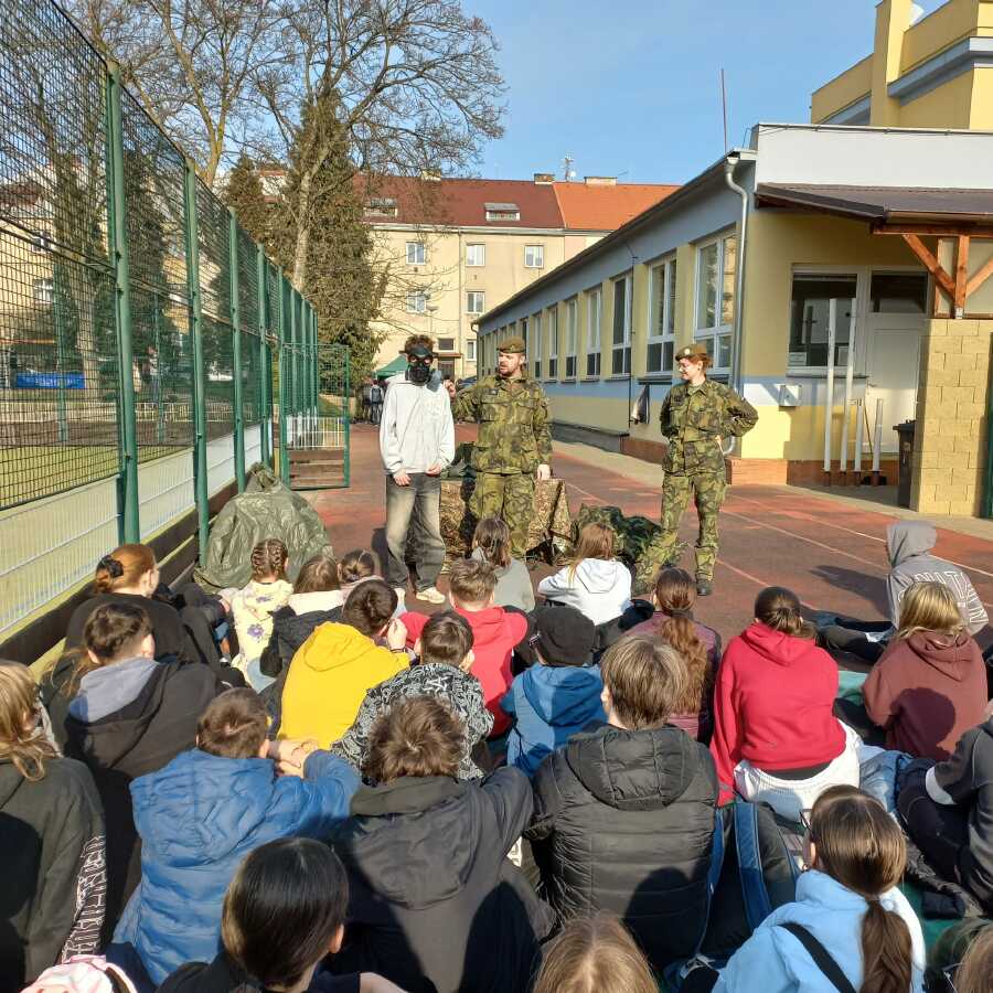 V pondělí 23.3.2026 naši školu navštívili zástupci Ministerstva obrany a Armády ČR v rámci programu POKOS (Příprava občanů k obraně státu). Místo běžných hodin v lavicích čekal na žáky den plný praktických dovedností, techniky a důležitých informací o bezpečnosti naší země.