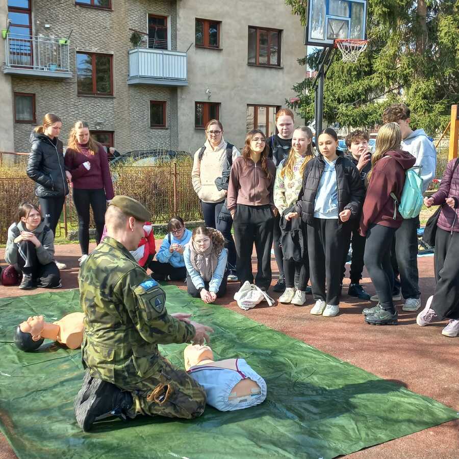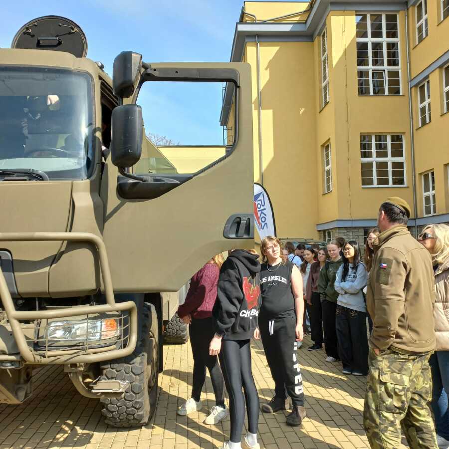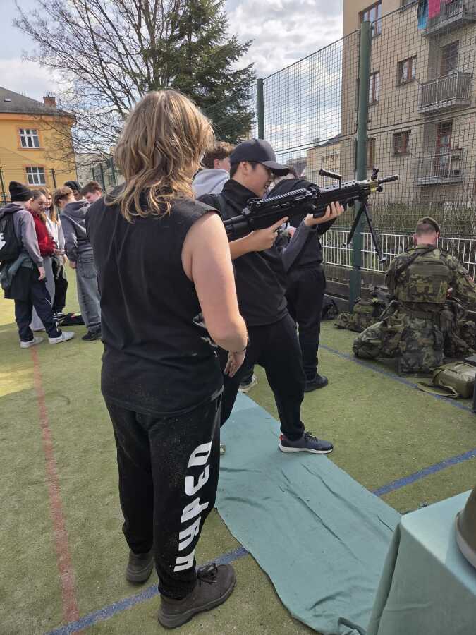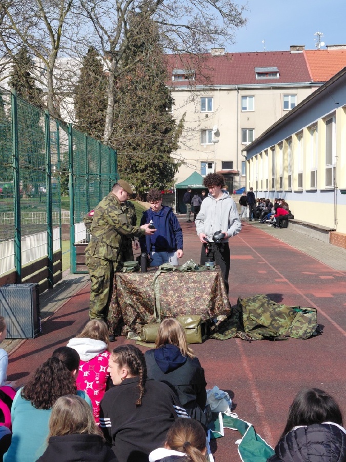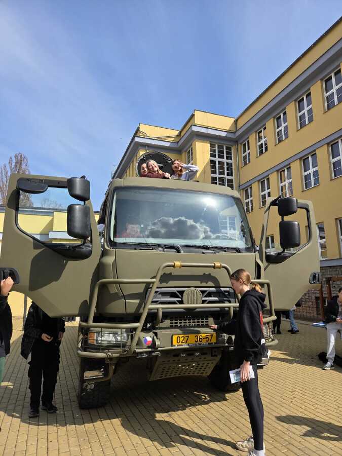 V pondělí 23.3.2026 naši školu navštívili zástupci Ministerstva obrany a Armády ČR v rámci programu POKOS (Příprava občanů k obraně státu). Místo běžných hodin v lavicích čekal na žáky den plný praktických dovedností, techniky a důležitých informací o bezpečnosti naší země.