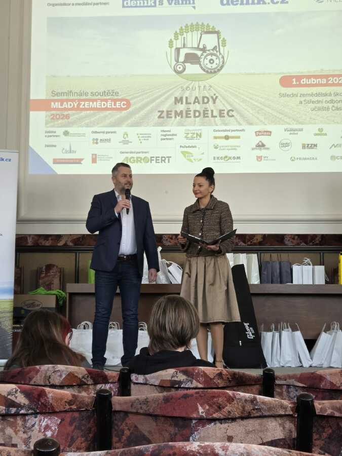 Ve středu 1.4.2026 se na Střední zemědělské škole a Středním odborném učilišti Čáslav uskutečnilo regionální semifinále prestižní soutěže Mladý zemědělec. Naši školu reprezentovali dva naši žáci, Matěj Janata a Kryštof Zámiš, kteří přijali výzvu poměřit své síly s konkurencí v disciplínách prověřujících nejen znalosti, ale i zručnost a pevné nervy.