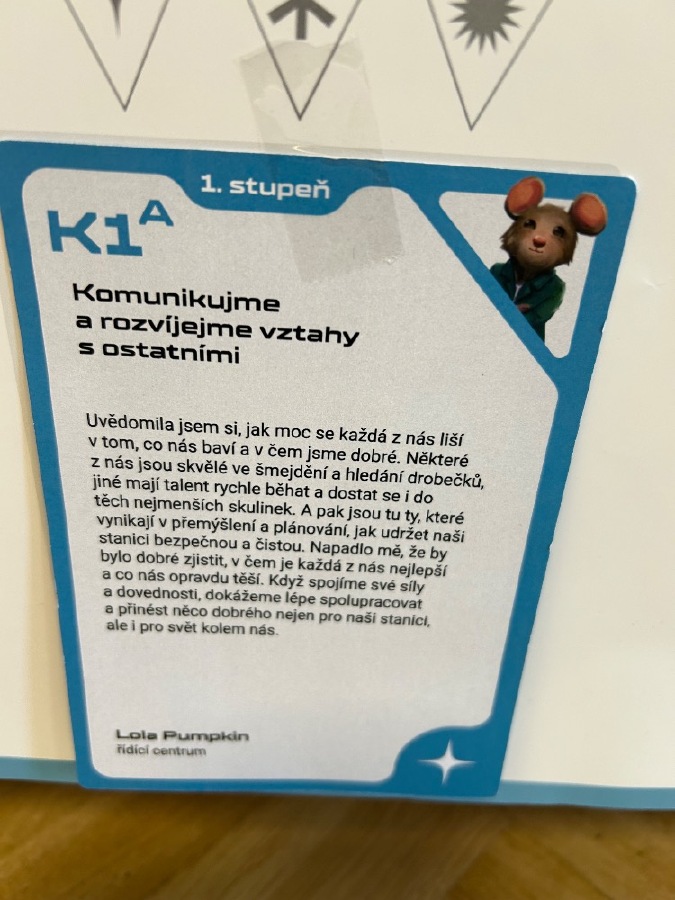 První mise je zaměřena na komunikaci a rozvoj vztahů mezi dětmi. Podporuje vzájemné porozumění a respekt, připravuje děti na zvládání výzev. Děti se dělily o své záliby a dovednosti, objevovaly společné i jedinečné prvky, učí se spolupracovat. Společná diskuze posiluje jejich empatii, kreativitu a týmovou spolupráci. Také se učíme si říct o pomoc, podporu.
