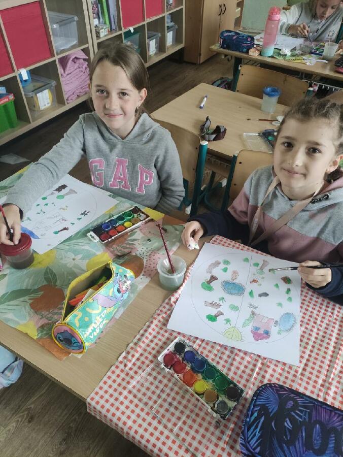 V další části projektu se pokusili výtvarně i slovně ztvárnit svou představu o planetě, kde by polovina prostoru patřila přírodě a druhá polovina lidem. Jejich nápady byly nejen kreativní, ale často i velmi inspirativní.