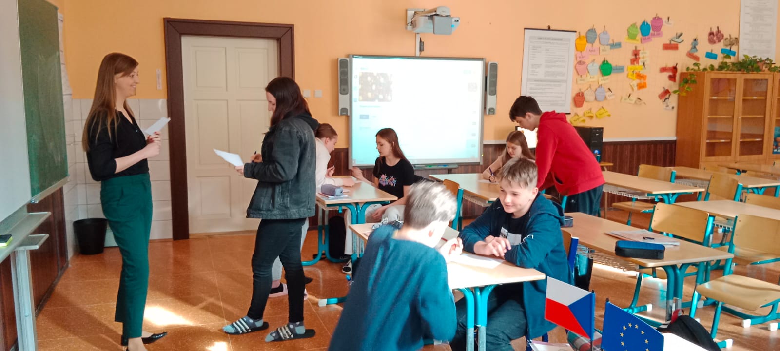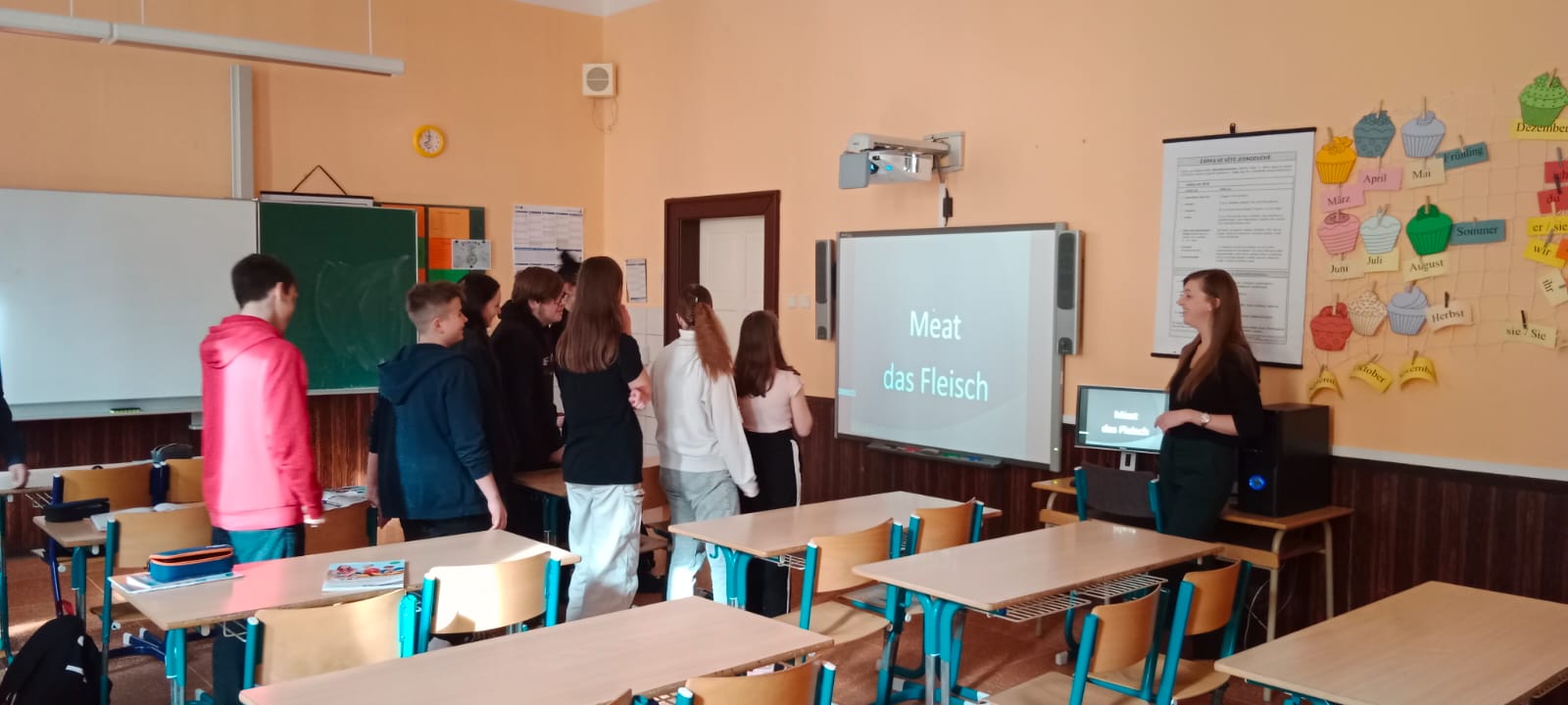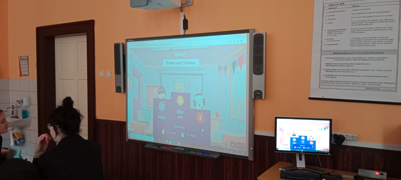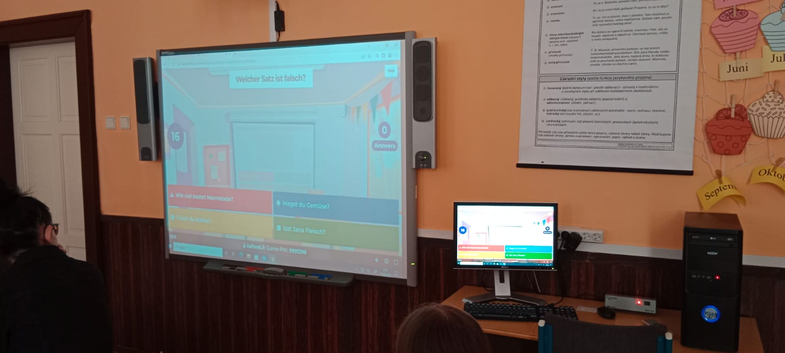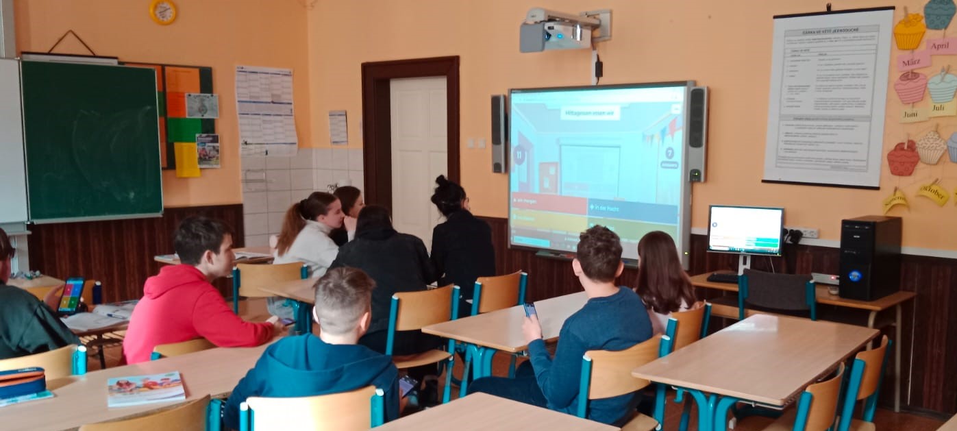 Na jedné z hodin německého jazyka jsme minulý týden přivítali paní ředitelku. Hodinu jsme začali tím, že jsme si kladli otázky na různá témata a vzápětí jsme přešli k opakování slovní zásoby. Žáci utvořili dva týmy, kdy překládali slovíčka z anglického jazyka do německého.