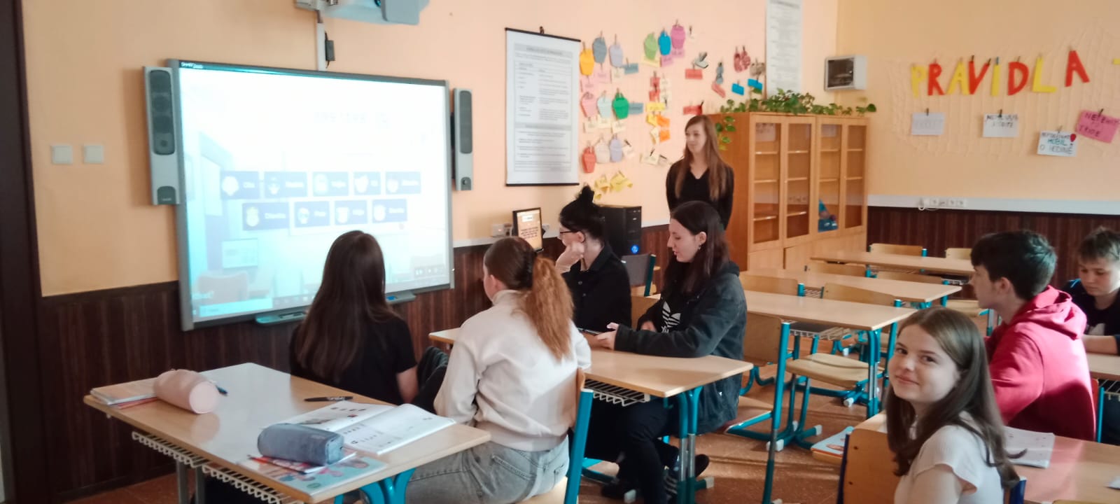 Následně jsme pokračovali kvízovou videohrou Kahoot. Děti odpovídaly na svých telefonech na otázky a podle rychlosti a počtu správných odpovědí postupovaly na pomyslné stupně vítězů.