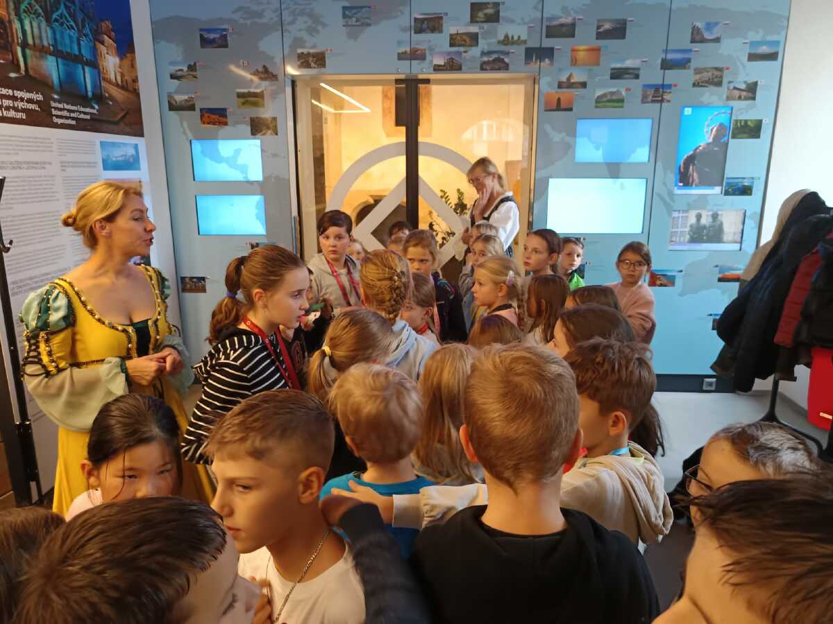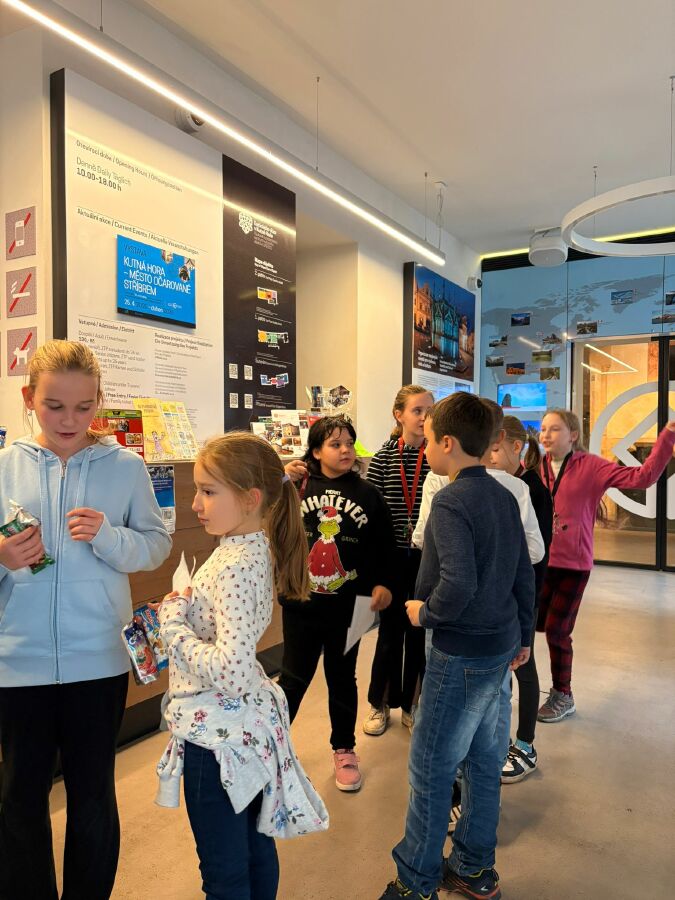UNESCO - HRANÍ aneb, slavíme v Dačického domě, byl připravený program pro žáky ze školní družiny, na který se vydali ve středu 22. 10. 2025. Návštěvou jsme oslavili výročí zápisu Kutné Hory na Seznam světového dědictví UNESCO. Čekalo na nás odpoledne plné zábavy. Plnili jsme úkoly inspirované českými městy (Litomyšl, Český Krumlov, Telč…) nechybělo ani dobrodružství. Po splnění všech zadaných úkolů čekala na každého účastníka sladká odměna. Děkujeme pracovníkům lektorského centra DD za krásné odpoledne.