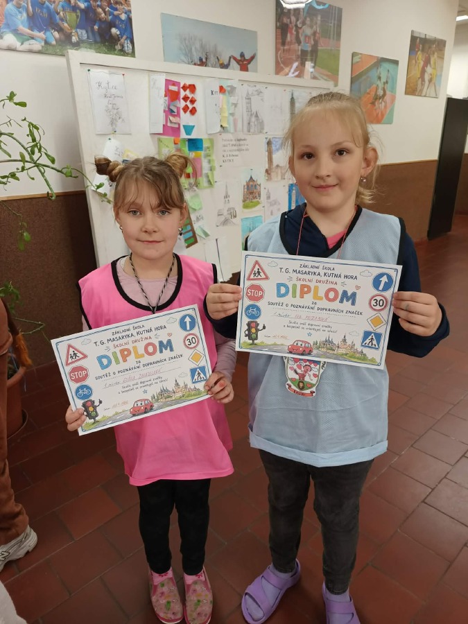 V průběhu měsíce dubna se žáci věnovali tématu dopravní výchovy, především poznávání dopravních značek. K upevnění znalostí využívali různé formy práce, například pracovní listy, tematické karty nebo oblíbené pexeso se značkami. Díky těmto aktivitám si hravou formou procvičili nejen samotné značky, ale i jejich význam a správné použití v praxi. Své znalosti a nabyté informace využili v dopravní soutěži, která proběhla ve středu 22. 4. 2026. Soutěž byla zaměřena na rychlé a správné rozpoznání dopravních značek a orientaci v prostoru. Výsledky dopadly takto: v mladší kategorii zvítězila dvojice děvčat Eliška Zavadilová a Eva Murasová, druhé místo získal Oleksandr Svitlychnyi a Erik Pokorný, třetí místo obsadila Veronika Šimůnková a Amálie Schwarzová.V kategorii starších se na prvním místě umístila Adéla Šimůnková, druhá skončila Julie Auerová a třetí místo obsadil Jáchym Kubánka. Pro vítěze byl připraven diplom a drobná odměna. Celá akce se nesla v příjemné atmosféře a děti si užily hezky strávené odpoledne plné zábavy i poučení.