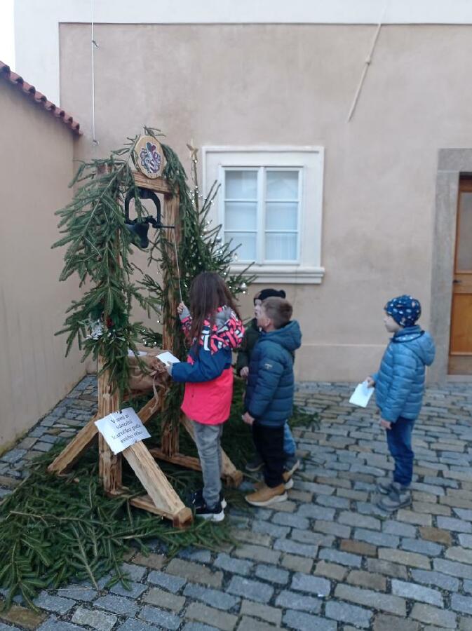 Ve čtvrtek 11. 12. 2025 se děti z 3. oddělení školní družiny vypravily na nádvoří Sankturinovského domu, kde stojí krásný vánoční stromeček a vedle něj kouzelný zvoneček. Kdo na ten zvoneček zazvoní, ten si na Štědrý den Ježíška přivolá. A tak se všechny děti nechaly unést kouzlem Vánoc a doufají, že se jim splní i ta nejtajnější přání.