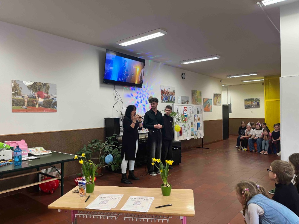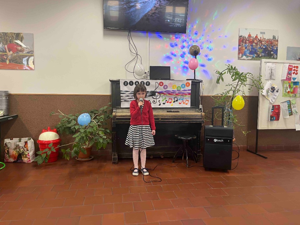 Školní družina uspořádala v pátek 20. února 2026 pro děti pěveckou soutěž Zlatý Krákora. Zazpívat nám přišli přihlášení začínající zpěváci, zpěvačky a skupiny. Výkony soutěžících hodnotila odborná porota: Viktor Fiala-zpěvák a kytarista kapely ZND a jeho producent. Překonat trému a zazpívat před publikem se podařilo každému účastníkovi soutěže, zazněly tu písně z oblíbených pohádek i skladby známých interpretů. Překvapením byla také choreografie k některým písničkám. Nechyběly ani momenty napětí, kdy jsme čekali na rozhodnutí poroty o pořadí soutěžících. V kategorii jednotlivců se na 1. místě umístila Adéla Šimůnková, 2. místo získala Julie Gábelová, na 3. místě skončila Barbora Kocourková. V kategorii hudební skupina vyhrála trojice děvčat Amálka Schwarzová, Laura Tátovská a Agáta Tátovská, 2. místo obsadila Kristina Bilynets a Tereza Plívová, 3. místo získala Vanesa Jonová, Eliška Lesáková, Veronika Nekolová. Na konci soutěže měli diváci příležitost hlasovat a vybrat „Miláčka publika“, vítězem s největším počtem hlasů se stala Emma Dvořáková a trojice děvčat Amálka Schwarzová, Laura Tátovská a Agáta Tátovská. Odměnu a věcnou cenu si zasloužili všichni zpěváci a zpěvačky, kteří vystoupili před publikem. Pro vítěze bylo připravené překvapení od pana producenta: budou mít možnost nahrát vlastní písničku. Tato cena může být pro mladé interprety prvním krokem na cestě k hudební kariéře. Těšíme se na další ročník pěvecké soutěže.
