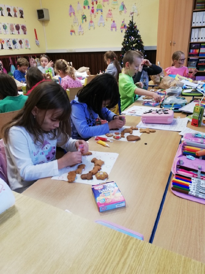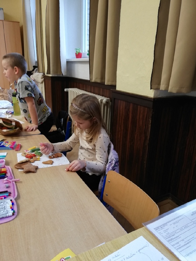 Závěr dne patřil sladké tečce. Děti ve třídě ozdobily perníčky, které si den předem napekly ve škole s rodiči, a poté si na nich pochutnaly.