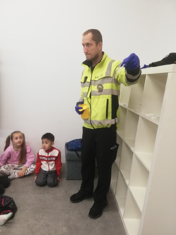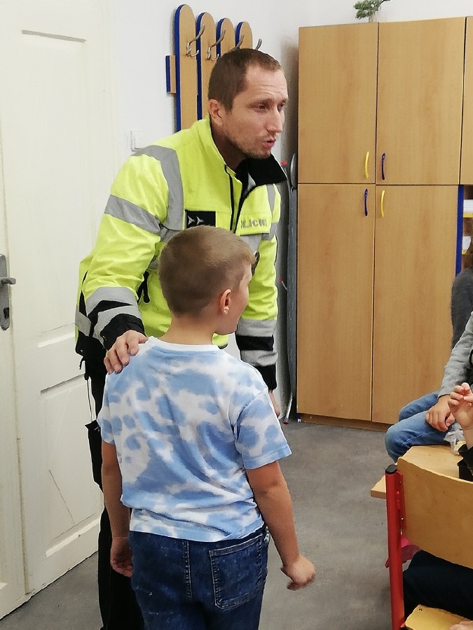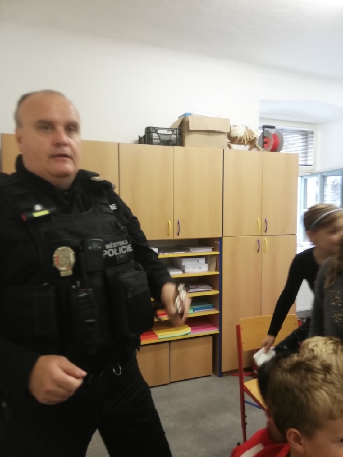 Společně s dětmi si povídali o tom, jak správně postupovat při nálezu injekční stříkačky, co dělat v případě, že by se někdo pokusil odvést jejich kamaráda, a také jak se bezpečně pohybovat po silnici. Prvňáčci si připomněli důležitost používání reflexních prvků a správného chování na přechodu pro chodce.