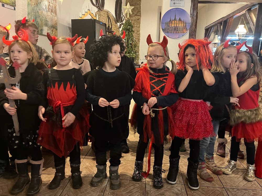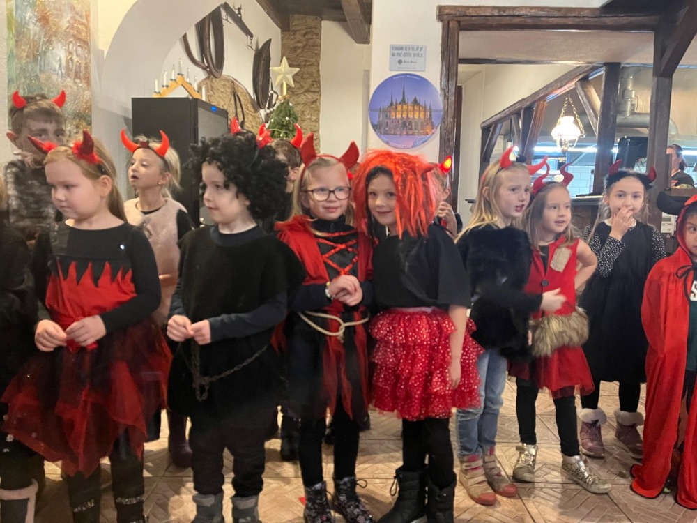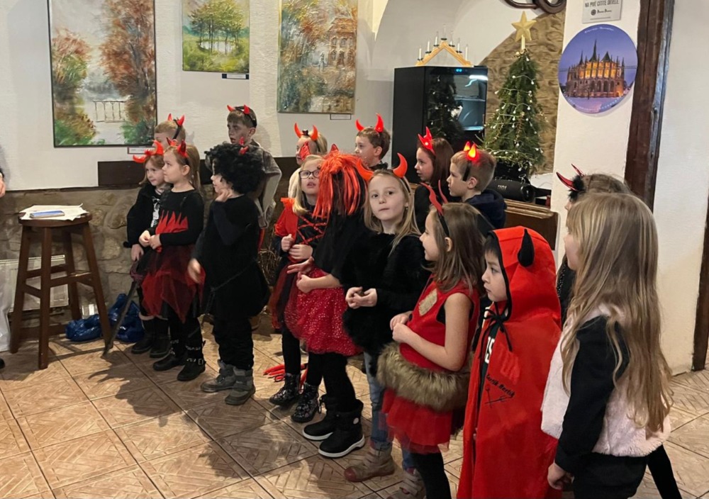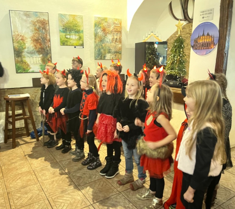 Prvňáčci ze třídy 1.B vystoupili pro místní seniory ze Svazu postižených civilizačními chorobami (Spcch v ČR). Předvedli své čertovské pásmo písniček a básniček, které si pilně nacvičovali během vyučování. Byla to pro ně velká výzva i radostná událost. Na vystoupení dorazili s nadšením, v kostýmech malých čertíků, a už při jejich příchodu se rozzářily oči všech přítomných. Pásmo mělo velký úspěch. Senioři děti ocenili potleskem, úsměvy i dojetím. Bylo vidět, jak je potěšil nejen samotný program, ale i to, že si na ně naši nejmladší udělali čas a přišli jim zpříjemnit adventní odpoledne.