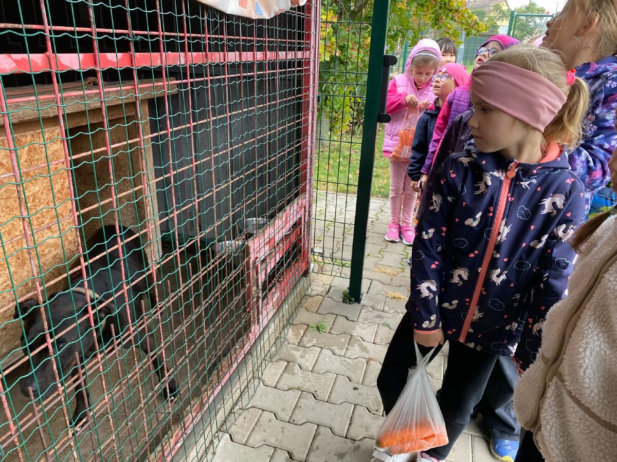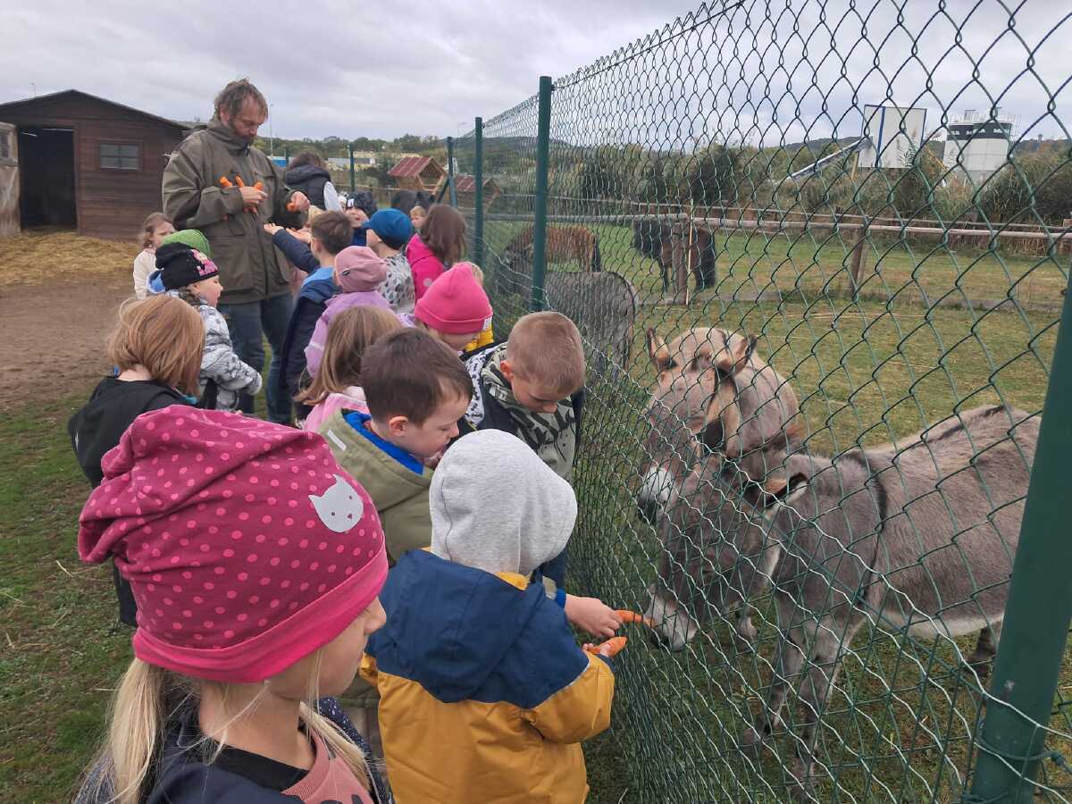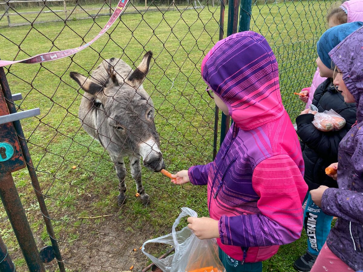 Den zvířat si připomínáme různě. Naši nejmenší se vydali za zvířátky do kutnohorského útulku. Děti měly možnost si prohlédnout celé zázemí, nahlédly do života a osudů pejsků v útulku. Dověděly se, jak se pejsek čipuje, co to znamená adopce i proč se cizí pejsek bez svolení nehladí. Pak děti zamířily i na Ranch Karlov, kde čekali čtyřnozí obyvatelé s chutí na něco dobrého. Čerstvá mrkev udělala radost koníkům, oslíkům i dalším zvířátkům.
