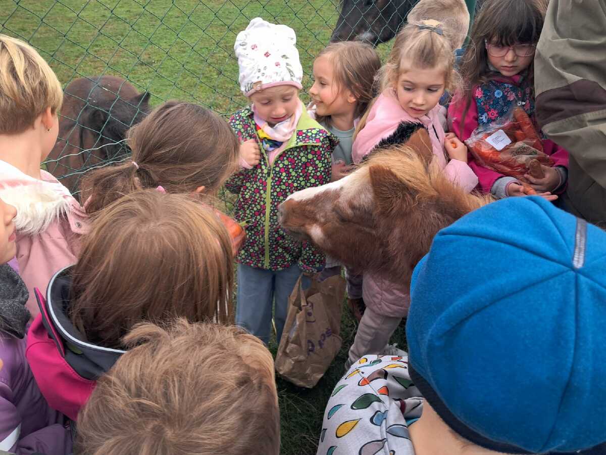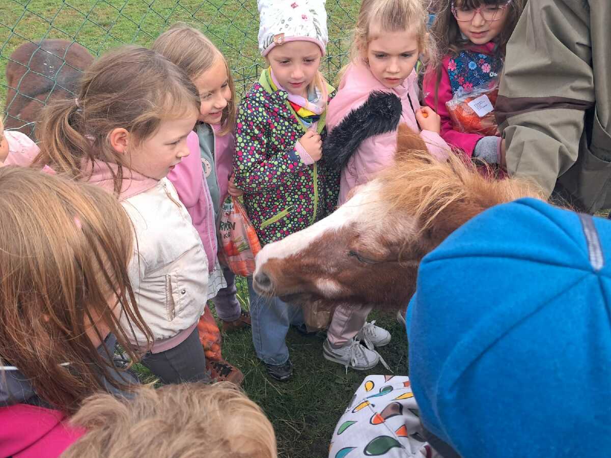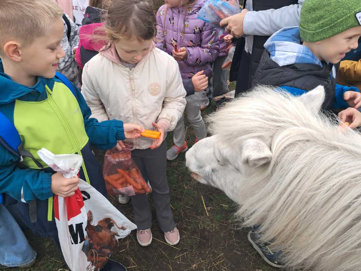 Den zvířat si připomínáme různě. Naši nejmenší se vydali za zvířátky do kutnohorského útulku. Děti měly možnost si prohlédnout celé zázemí, nahlédly do života a osudů pejsků v útulku. Dověděly se, jak se pejsek čipuje, co to znamená adopce i proč se cizí pejsek bez svolení nehladí. Pak děti zamířily i na Ranch Karlov, kde čekali čtyřnozí obyvatelé s chutí na něco dobrého. Čerstvá mrkev udělala radost koníkům, oslíkům i dalším zvířátkům.