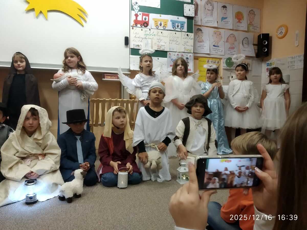 V úterý 16.12. předvedly děti svůj Vánoční příběh nejdříve dopoledne seniorům v pečovatelském domě a večer svým rodičům a prarodičům ve škole.