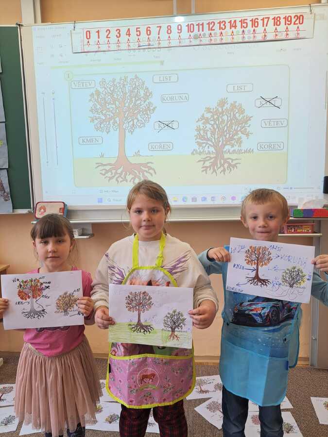 Již celý týden se ve výuce věnujeme stromům a naše snaha vyvrcholila v pondělí 20.10.-Den stromů projektovým dnem s centry aktivit. Druháci vytvořili výstavu, myšlenkovou mapu, hráli pexeso, skládali puzzle, vytvářeli výtvarnou podobu stromů a keřů, četli s porozuměním a pracovali s tablety. Moc děkujeme kamarádům z 5.A za pomoc s elektronikou. Akční vyučování nás moc bavilo.
