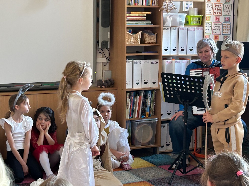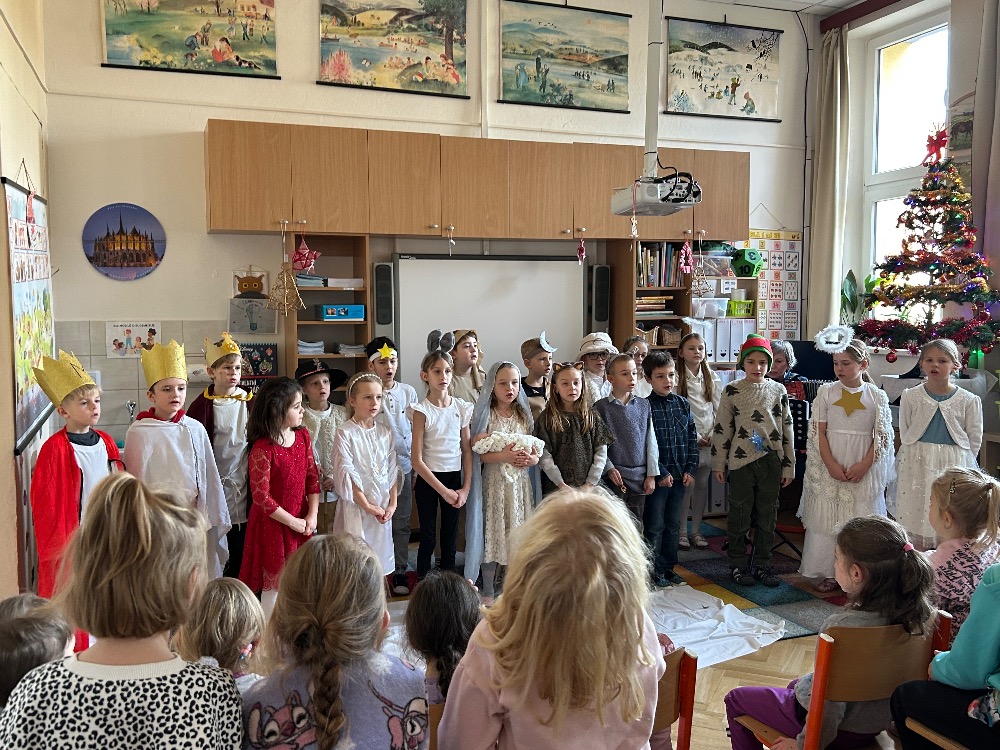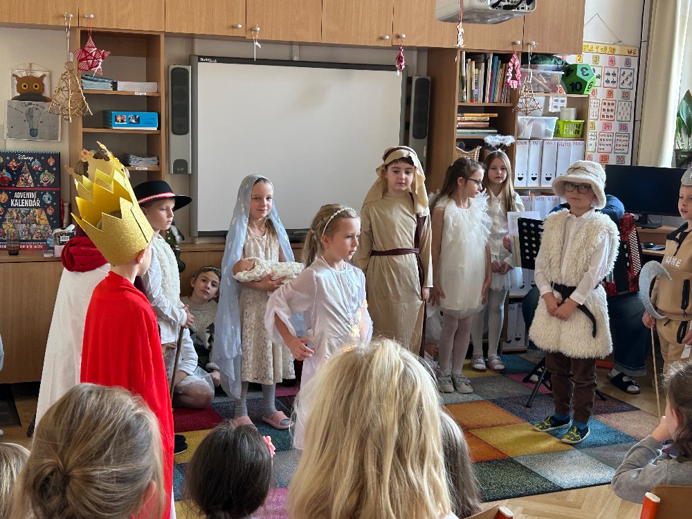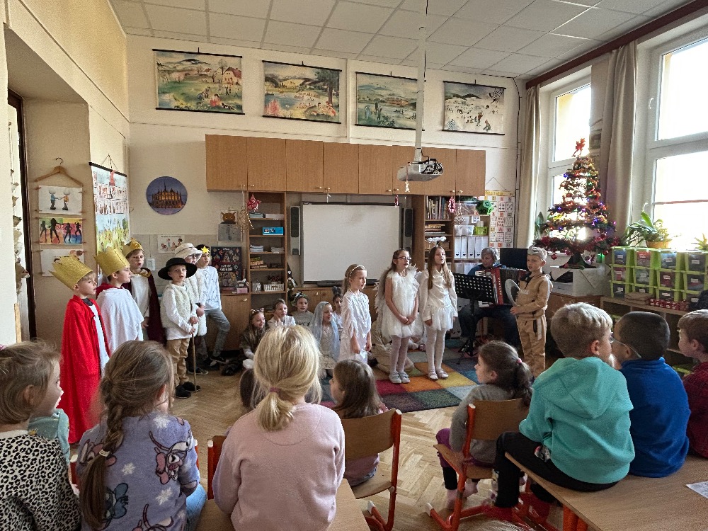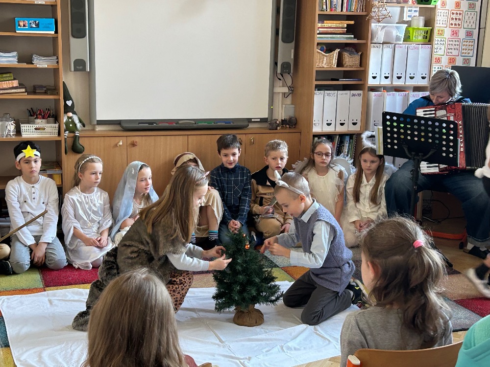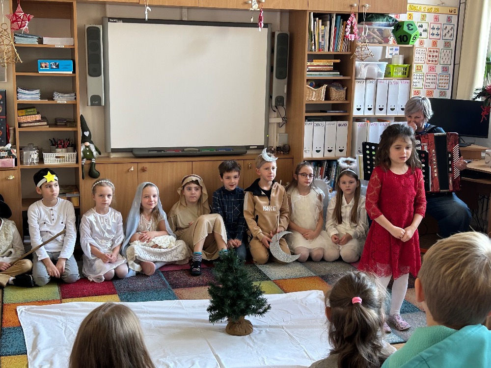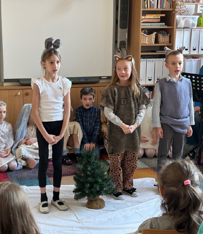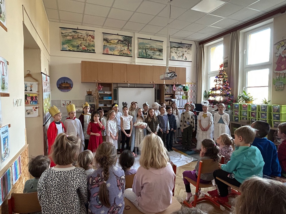 2.B zahrála vánoční pohádky pro děti z MŠ Benešova- Kytky