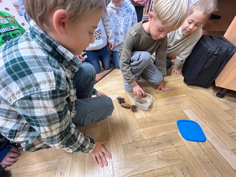 Vyzkoušeli jsme si jednoduché pokusy, kde jsme pozorovali reakce šišek ve vlhku a v suchu, pod tlakem jsme uvolňovali silice některých stromů, zachytávali jsme kyslík na listech.