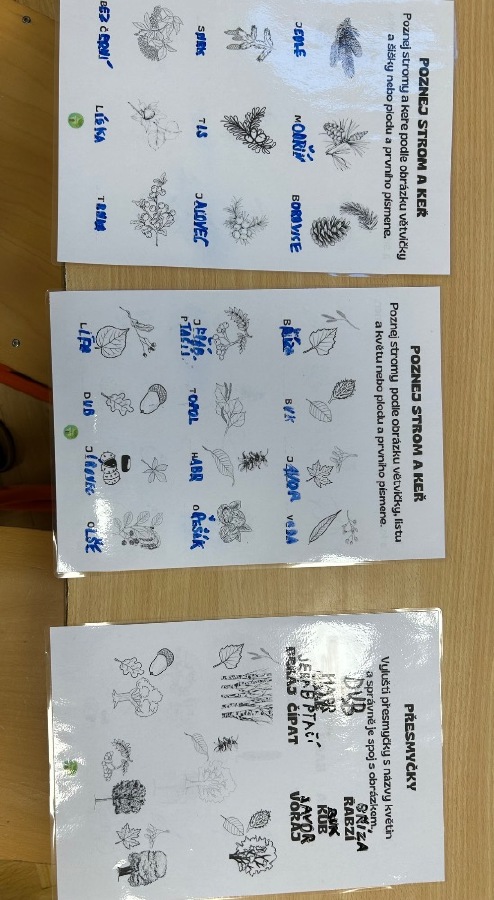 Výstupem tohoto dopoledne byl jednoduchý lapbook, který si děti vyrobily a slouží jim jako učební pomůcka. V samotném závěru měly děti poznávačku stromů. Těšíme se na další aktivity.