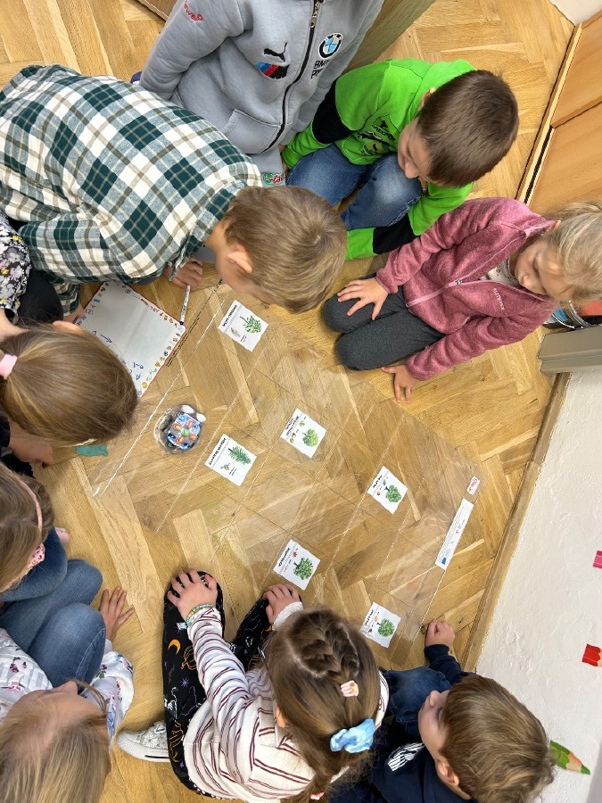 Děti z 2.B oslavily svátek stromů projektovou výukou. V rámci wellbeingu jsme společnými silami vybarvili a sestavili plakát. Mozky jsme bystřili přesmyčkami. Čtenářské dovednosti a znalosti geometrických tvarů jsme potrénovali díky geostromu, plánování - programování cesty jsme cvičili s blueboty.
