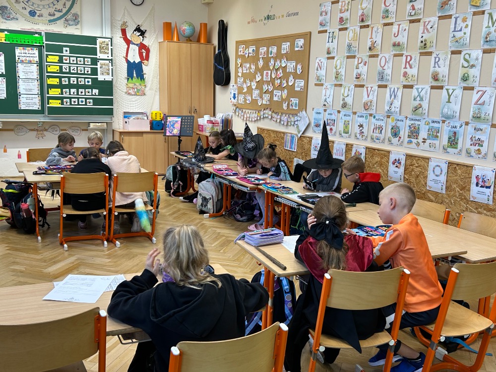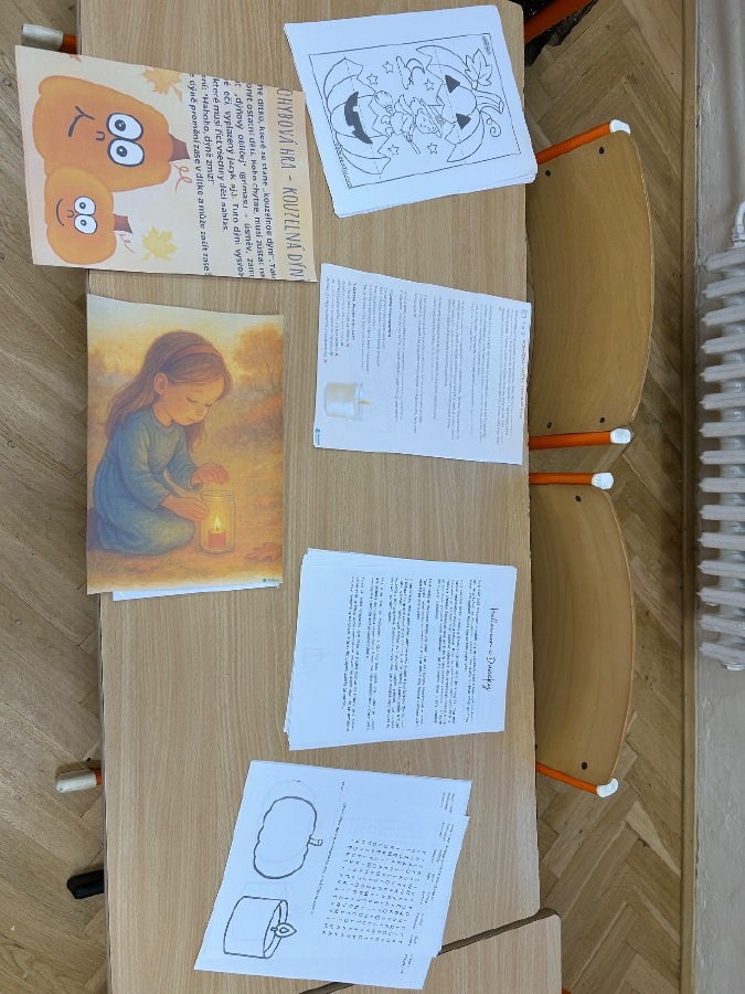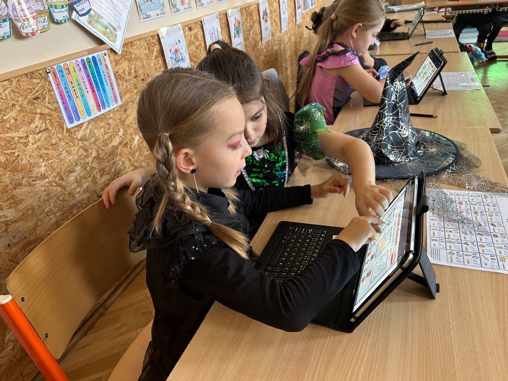 Prostřednictvím poutavého příběhu jsme si objasnili význam našeho komornějšího svátku. V rámci dalších aktivit jsme posuzovali shody a rozdíly mezi těmito dvěma svátky. Děti pak ve skupinkách nebo dvojicích řešily úkoly, doplňovaly chybějící informace. Vytvořily si jednoduchou skládačku pro zpestření, zahrály si hru na Kouzelnou dýni. Také si vyzkoušely práci s tablety, když hrály únikovku.