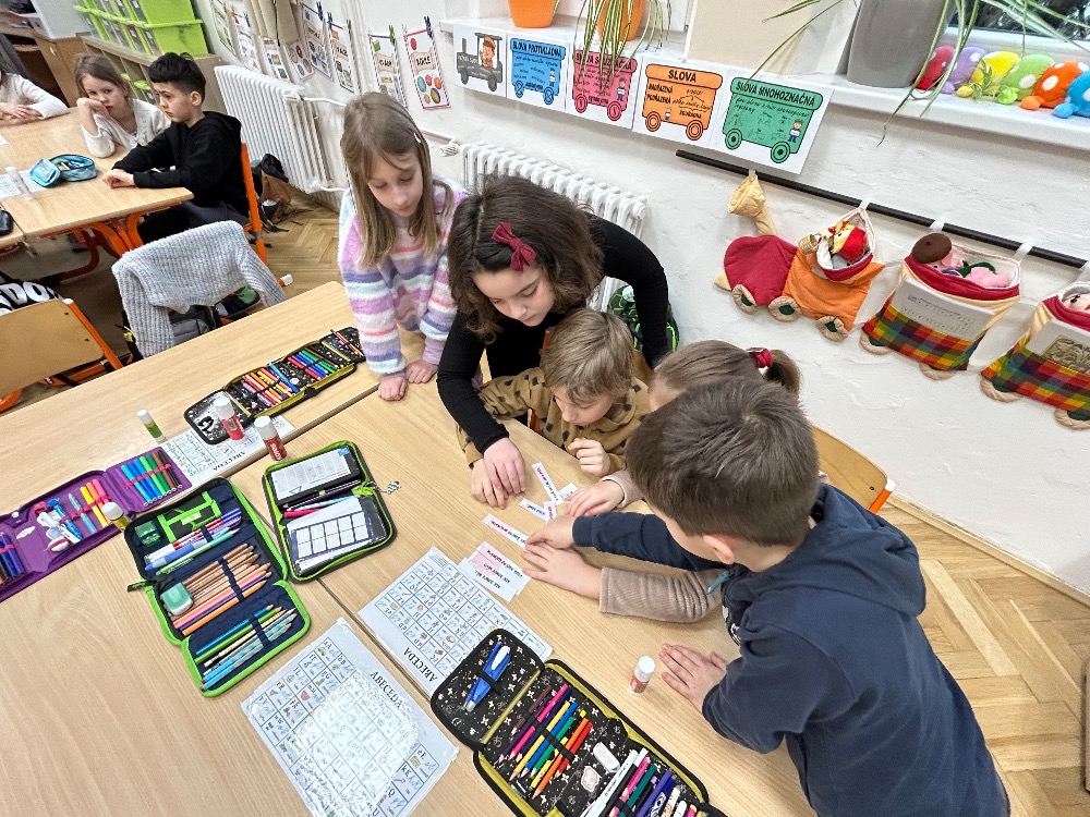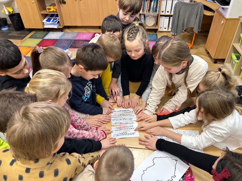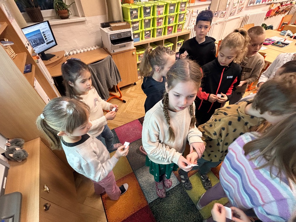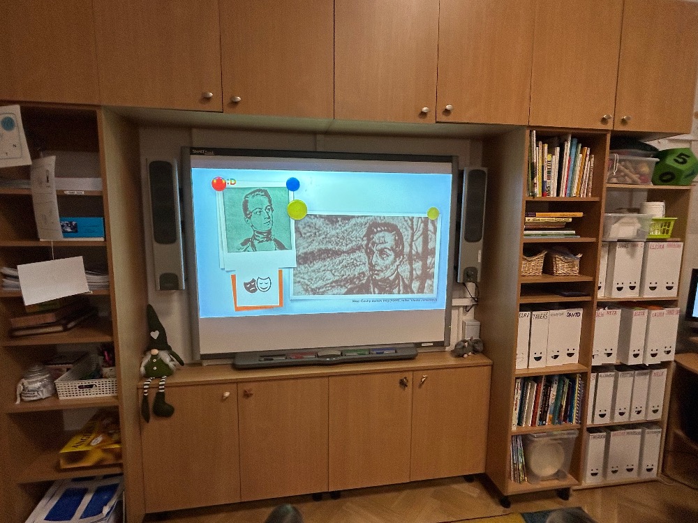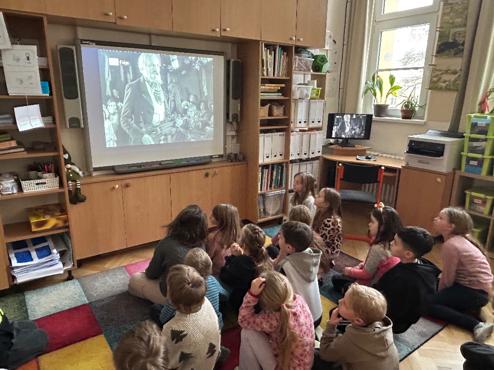 Žáci 2.B ve svém projektovém dni propojili hned několik témat. Přes pojmy vlast, domov jsme došli k naší státní hymně a odsud už to byl jen krůček k jejímu autorovi, Josefu Kajetánu Tylovi. Nejprve jsme přečetli knížku Příběh naší hymny. Tou nás provázel brouček jménem Týlek…. je zde krásně popsána a ilustrována krajina naší vlasti tak, aby vše pochopily malé děti. Týlek putuje českou krajinou a přemýšlí, kde je nejkrásnější místo k životu. Děti pak sestavily mapu naší republiky a ukázaly si na ní náš domov, naše město. V této souvislosti si připomněly, co je pro ně domov, kde se jim nejvíce líbí. Hudebně jsme si téma doprovodili snad nejkrásnější písní na světě, a to právě naší hymnou. Její slova nám pomohla výtvarně zpracovat část projektu. Od slov hymny to byl další krok k tomu, aby se žáci vydali po stopách samotného autora. Takže už ví, co původně znamená fidlovačka a jak to bylo se vznikem naší státní hymny. Zjistili, kde miláček národa žil, působil, jaká díla napsal. Také jsme řešili kvízy, vymýšleli obměny slov hymny. Třešničkou na dortu bylo malé překvapení v podobě návštěvy samotného autora. Samozřejmě herecky ztvárněného členem ochotnického spolku Tyl a zároveň kolegou T. Morawskim. Děkujeme mu tímto, že nás na chvilku vzal do 19. století. Výstupem z tohoto projektu bude velká kniha z kartonu, kde budou pohromadě veškeré aktivity.