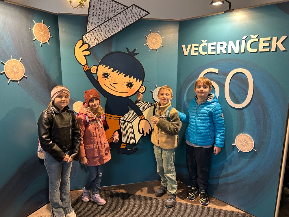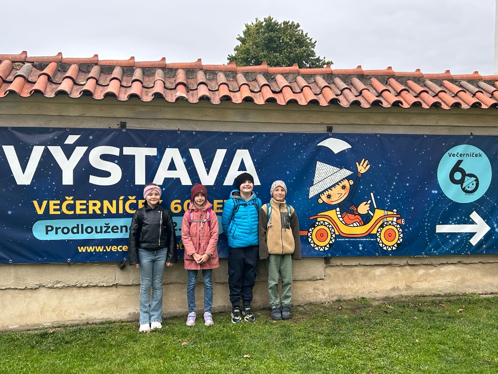 Hrstka dětí z 2.B se v sobotu vydala do Prahy, aby zhlédla interaktivní výstavu k 60. narozeninám Večerníčka. V areálu Strahovského kláštera jsme prožili příjemné chvíle a spoustu zábavy ve společnosti velkého množství známých postaviček a hrdinů ze světa dětské literatury a fantazie.
