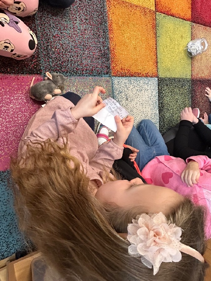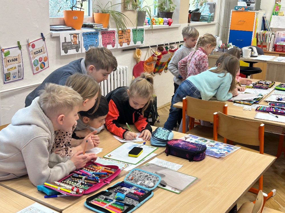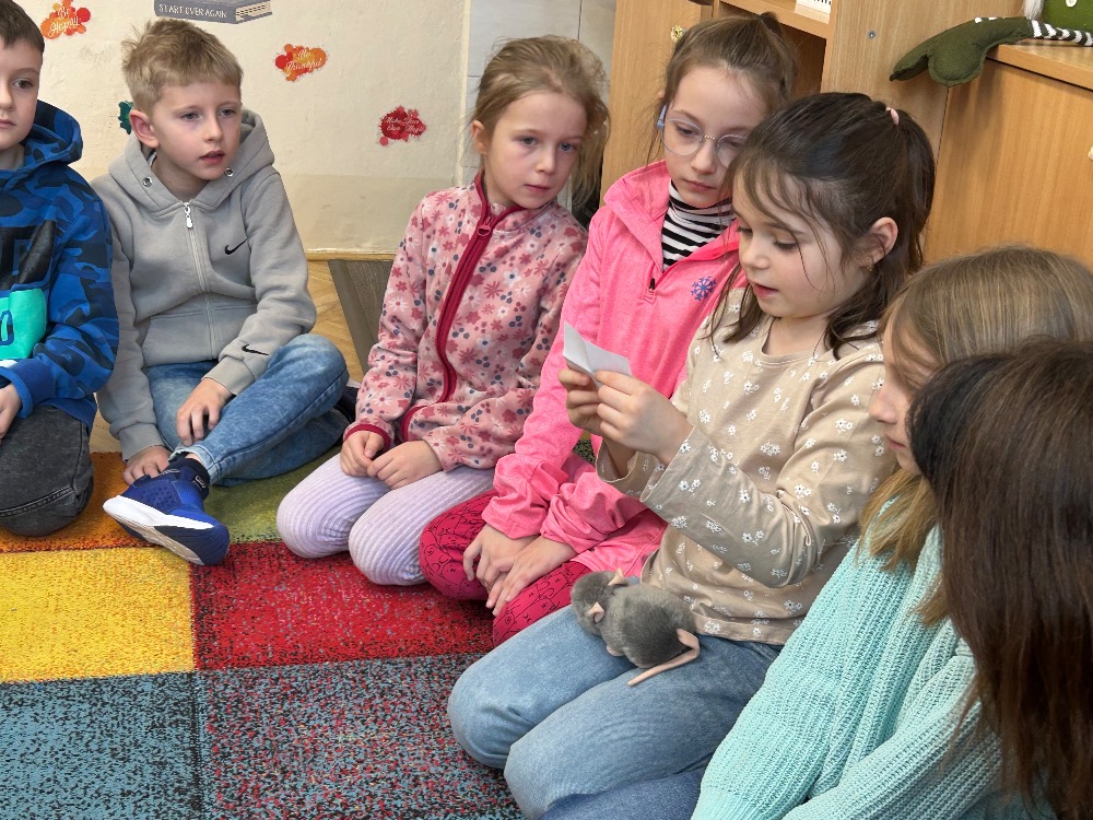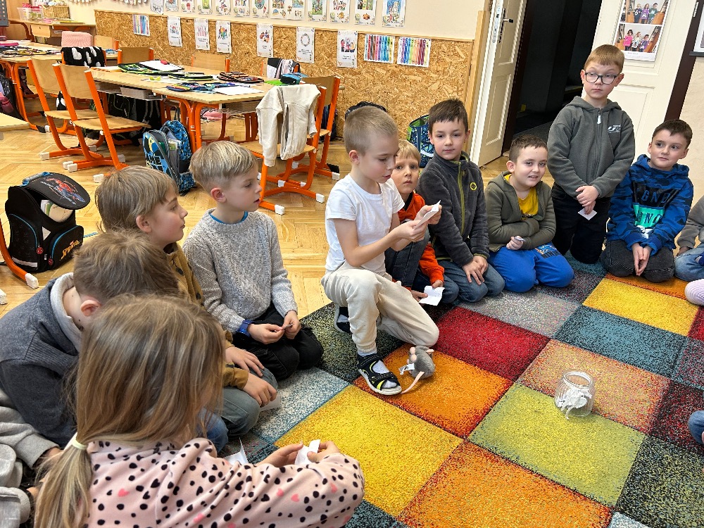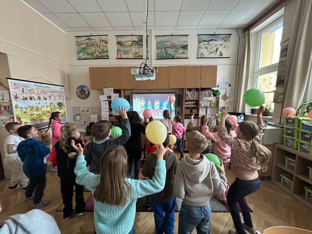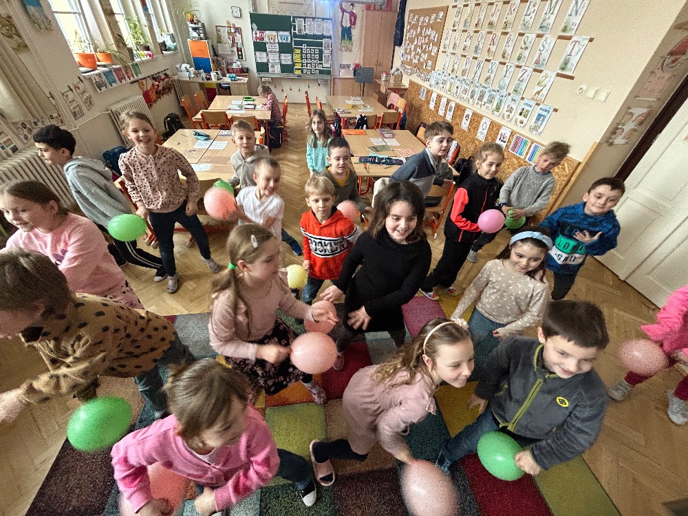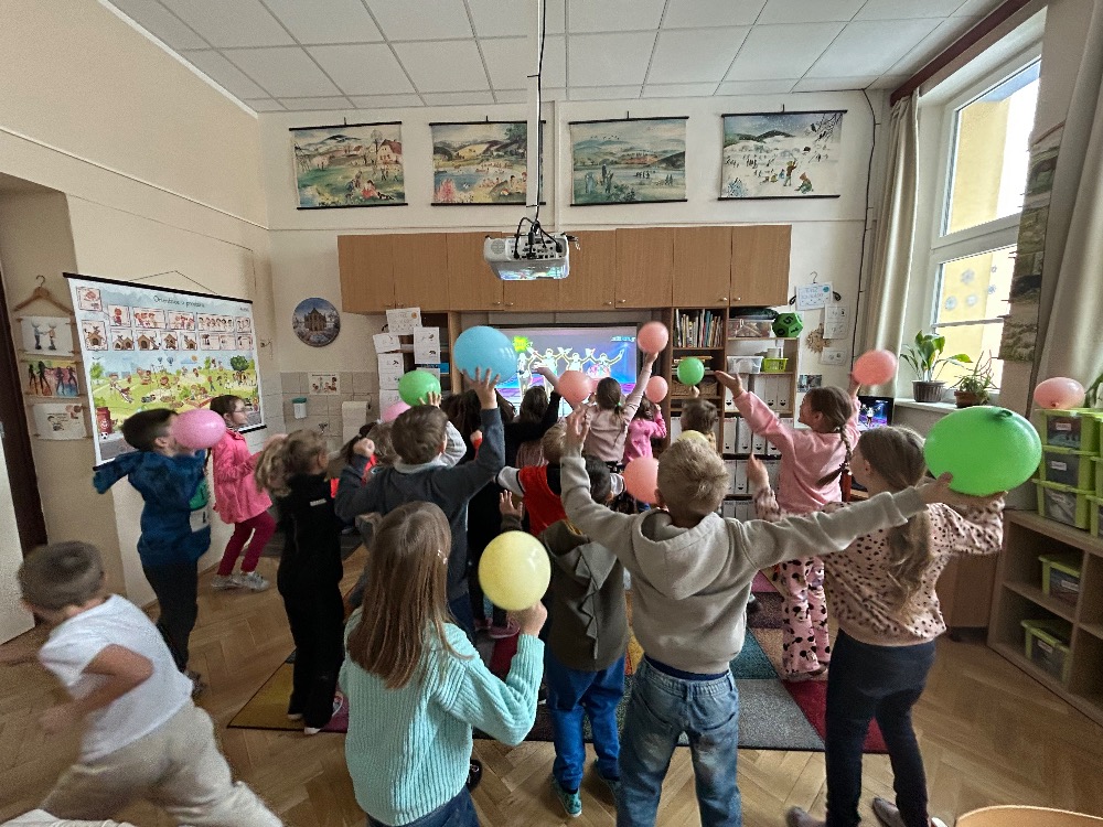 Děti si vyplnily sebehodnocení, napsaly vysvědčení i své třídní učitelce. Ve sklenici laskavosti jsme našli spoustu pozitivních vzkazů a hodnocení. Při jejich čtení nám pomohla myš Lenka (…myšlenka). Tyto hodiny jsme si samozřejmě osvěžili tancem a zpěvem. Také jsme si zahráli únikovou hru (děti pomáhaly Paní Zimě najít ztracený sníh, který jí ukradl obr z Krystalových hor). Celý den završilo předávání vysvědčení společně s osobním dopisem a drobných dárků. Protože bylo na co se těšit, bylo u nás ve třídě vysvětěšení.
