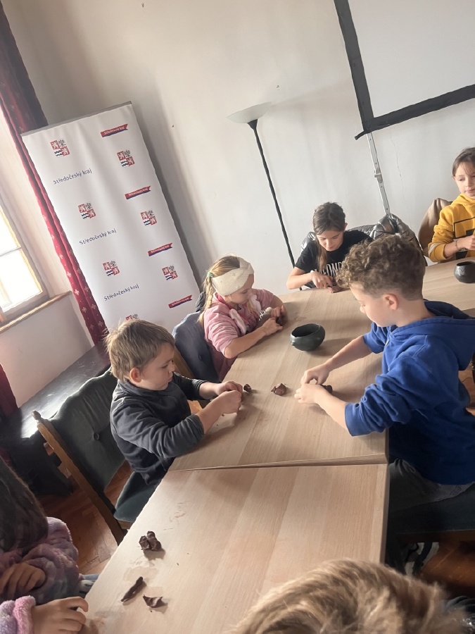 Třetí ročníky navštívily Hrádek - České muzeum stříbra, kde byl pro ně připraven program Dny v pravěku. Nejprve jsme se seznámili s pravěkými lidmi, jejich životem - co jedli, jak vařili, jaká zvířata chovali. Na stanovištích jsme si osahali nástroje, se kterými pracovali, lovili, sestavili jsme misku ze střepů a zkusili jsme drtit obilí. Porovnávali jsme minulost a současnost. Na závěr si každý z hlíny vytvaroval libovolný předmět pravěkého člověka.