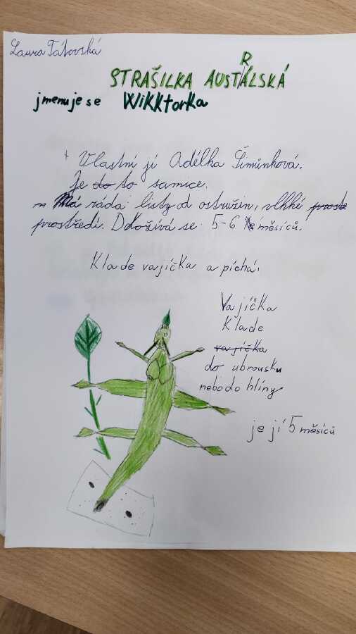 Dokonce jsme někteří od Adélky Šimůnkové dostali vajíčka strašilek australských, která teď budeme pár týdnů pozorovat a až se vylíhnou, budou z nich třídní maskoti.