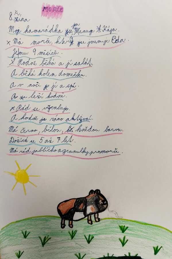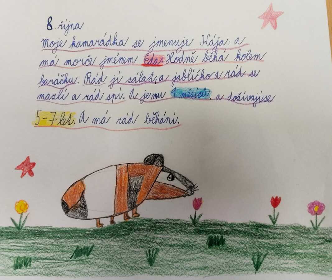 Jako každoročně jsme i letos oslavili Světový den zvířat s našimi milými mazlíčky. Vyprávěli jsme si, jak se o ně staráme, psali jsme sloh o mazlíčkovi spolužáka i anglický popis. Dále žáci vymýšleli přídavná jména, jaký může mazlíček být a poté i slovní úlohy o nich.