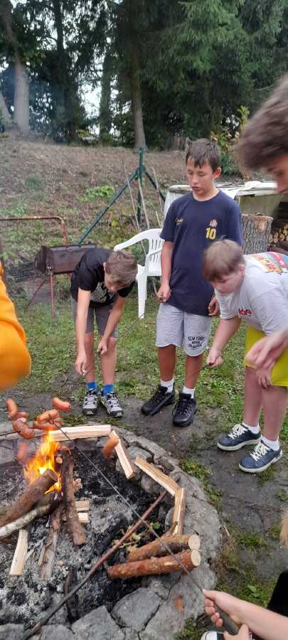 Pro děti byl připraven program plný aktivit – část z nich probíhala venku, část ve společenské místnosti. Nechyběla ani procházka okolím a čas na odpočinek. Večer jsme si společně opekli buřty, užili jsme si příjemnou atmosféru u ohně a nakonec zazpívali i několik písniček s kytarou.