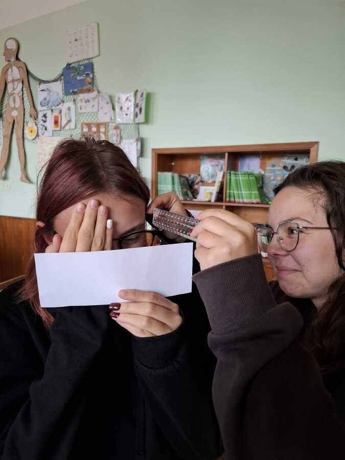 Při laboratorní práci z přírodopisu se žáci devátých tříd zaměřili na lidské smysly. Během své práce zjišťovali, jak dobře jejich smyslové orgány fungují, ale i jak mohou někdy klamat. Žáci pracovali ve dvojicích, aby mohli vzájemně porovnat své výsledky vnímání. Nejpodrobněji se věnovali svému zraku, ale nejvíce zážitků si odnesli z ověřování svých čichových a chuťových buněk.