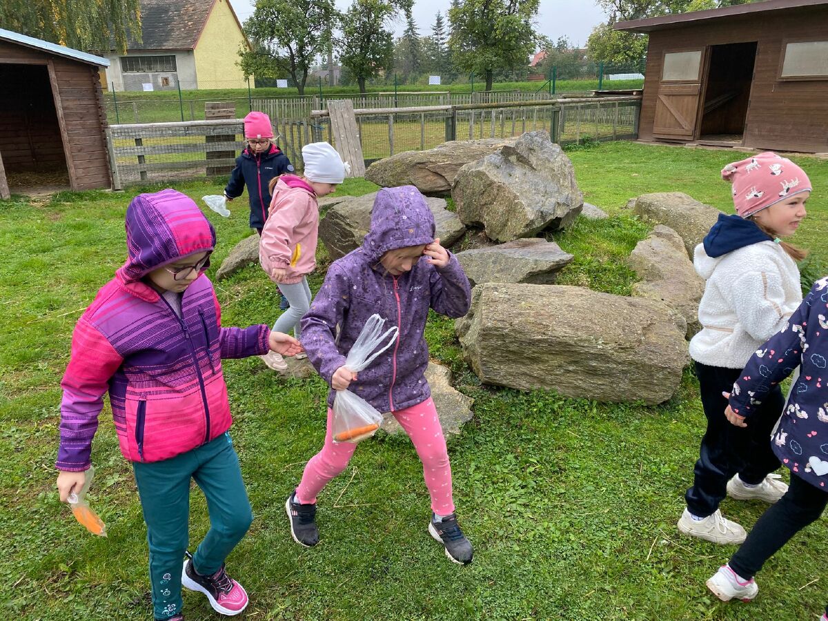 Den zvířat si připomínáme různě. Naši nejmenší se vydali za zvířátky do kutnohorského útulku. Děti měly možnost si prohlédnout celé zázemí, nahlédly do života a osudů pejsků v útulku. Dověděly se, jak se pejsek čipuje, co to znamená adopce i proč se cizí pejsek bez svolení nehladí. Pak děti zamířily i na Ranch Karlov, kde čekali čtyřnozí obyvatelé s chutí na něco dobrého. Čerstvá mrkev udělala radost koníkům, oslíkům i dalším zvířátkům.