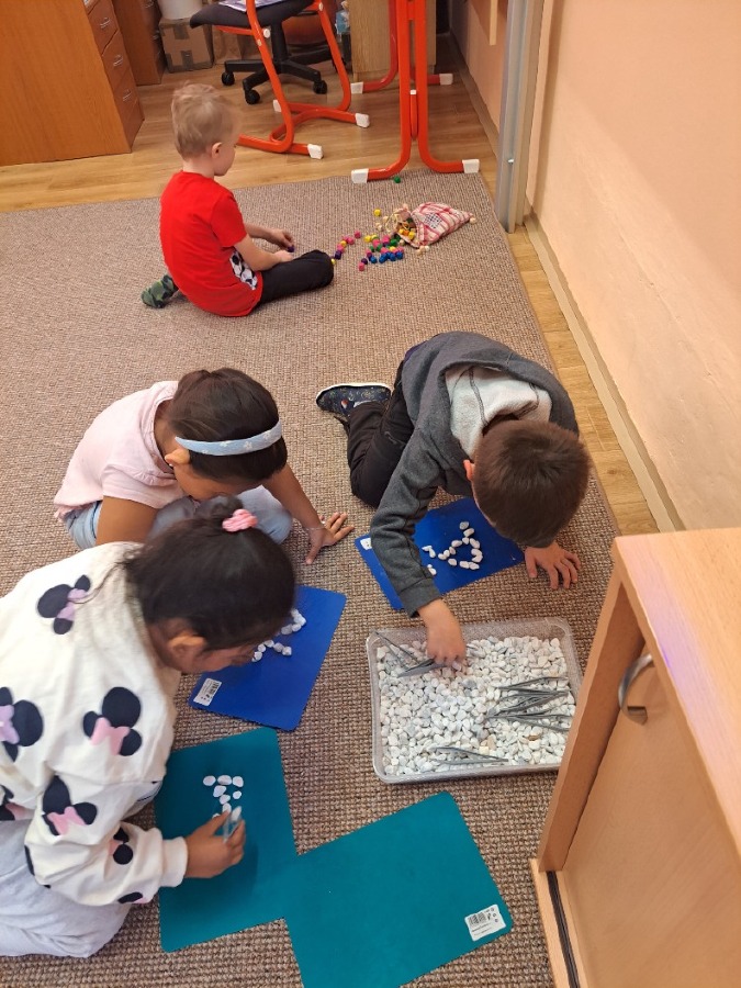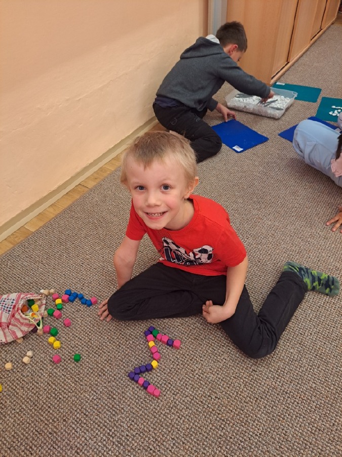 V pátek 18.10. jsme spojili výuku českého jazyka a pracovních činností. Procvičovali jsme jemnou motoriku a šikovnost našich ručiček různými motorickými činnostmi, prací s různým materiálem a zároveň jsme si zopakovali písmenka. Byla to skvělá zábava.