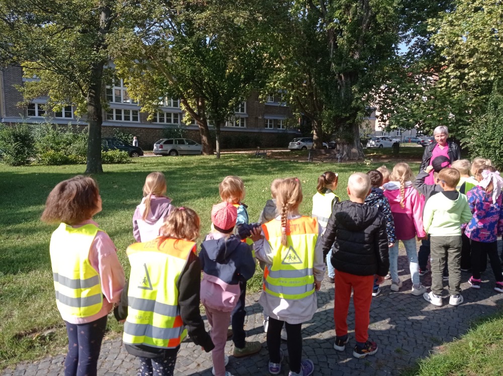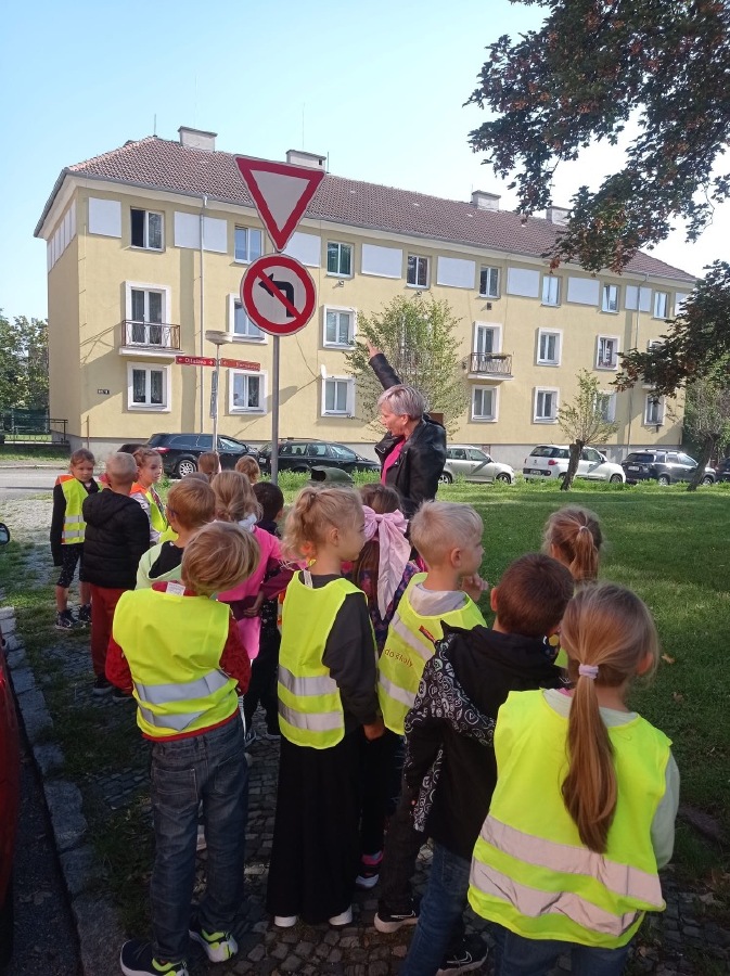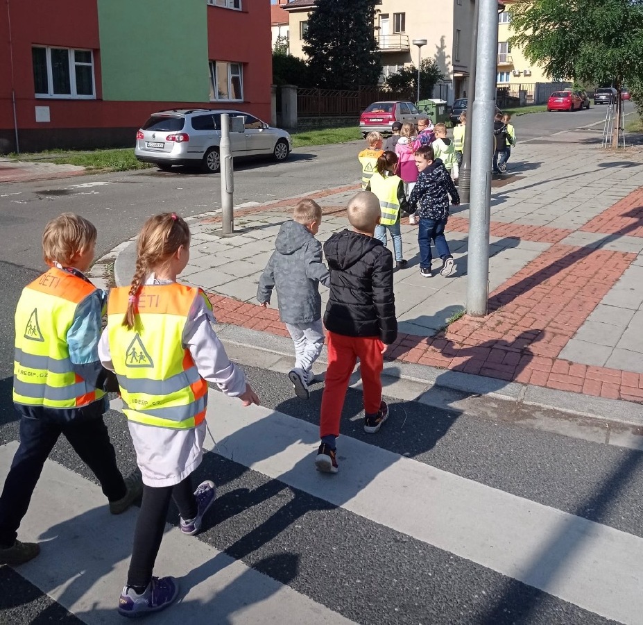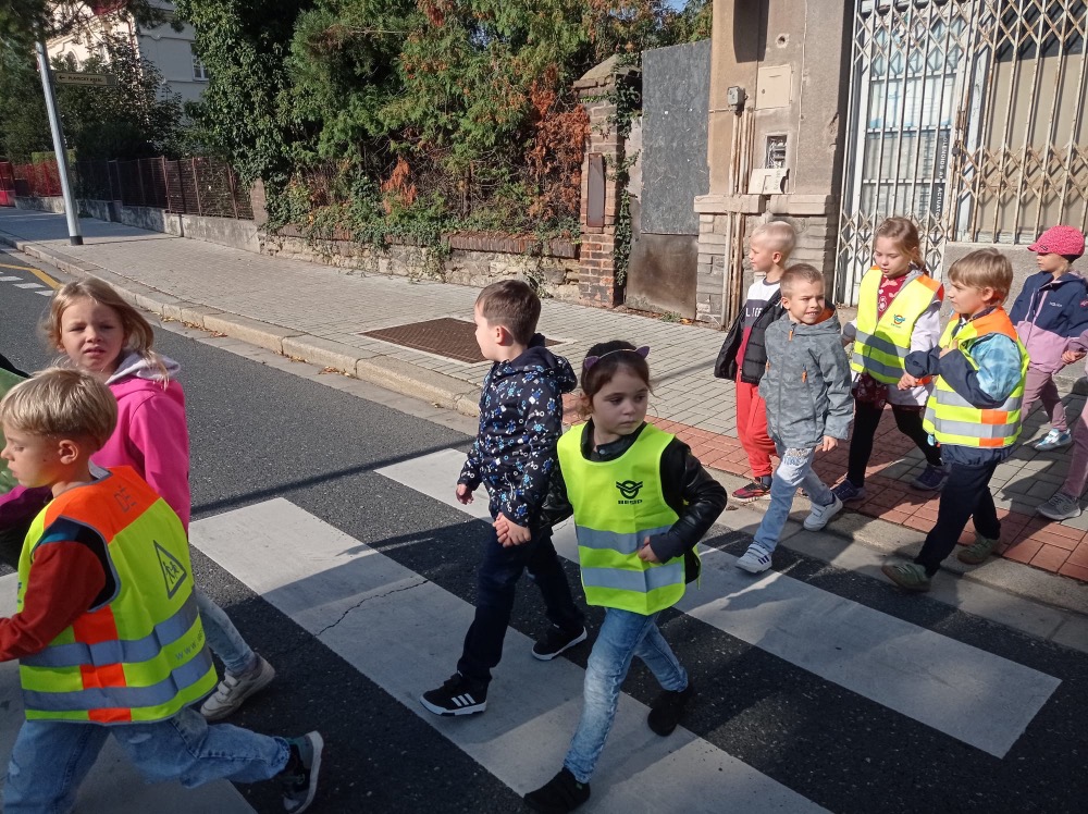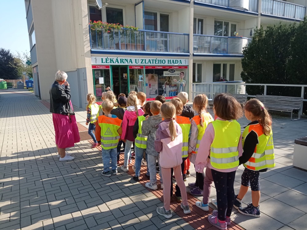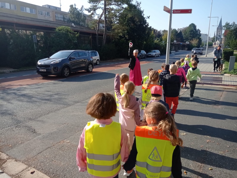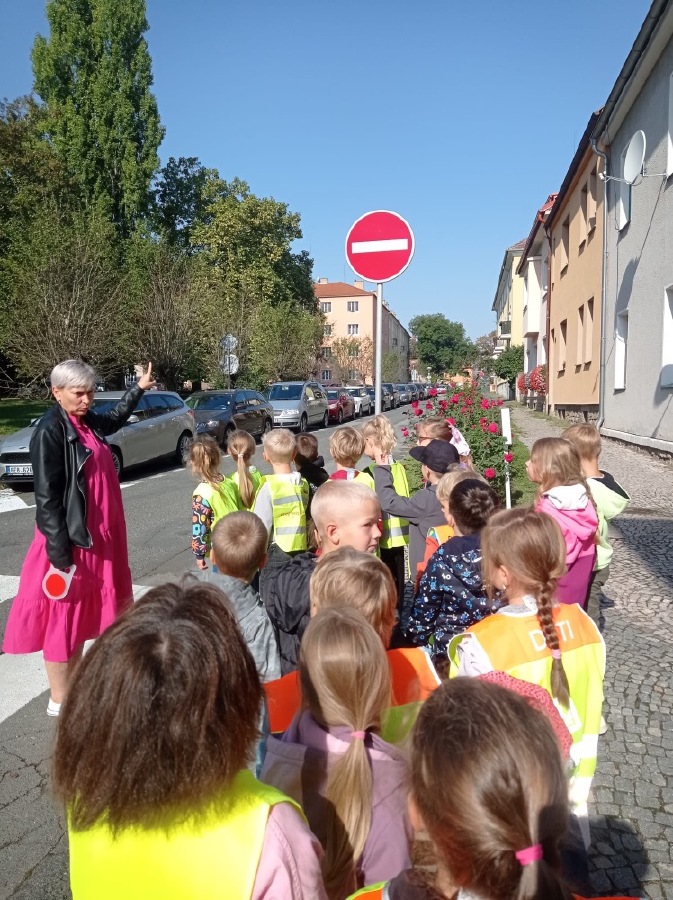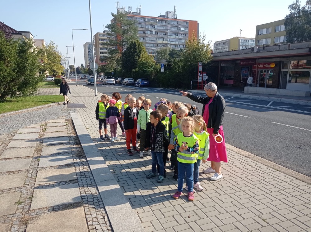 Ve středu se malí prvňáčci vydali v rámci prvouky na průzkum nejbližšího okolí školy. Cestou jsme si upevňovali pravidla silničního provozu pro chodce, poznávali dopravní značky, prohlédli budovy institucí a služeb, jež jsou na dosah naší škole. Ve výtvarné výchově pak děti zakreslily svou cestu po okolí školy jako součást projektu Pěšky do školy.