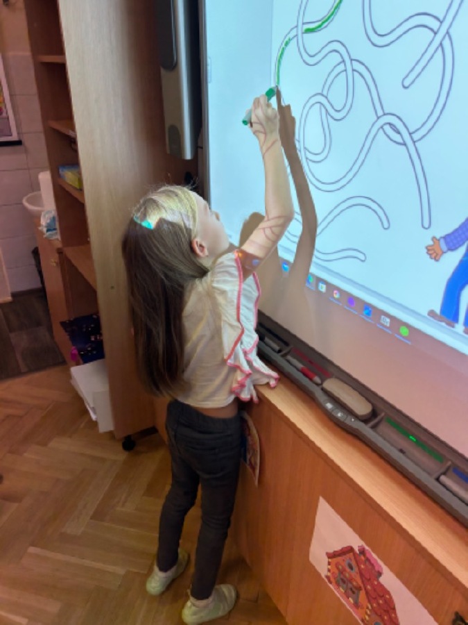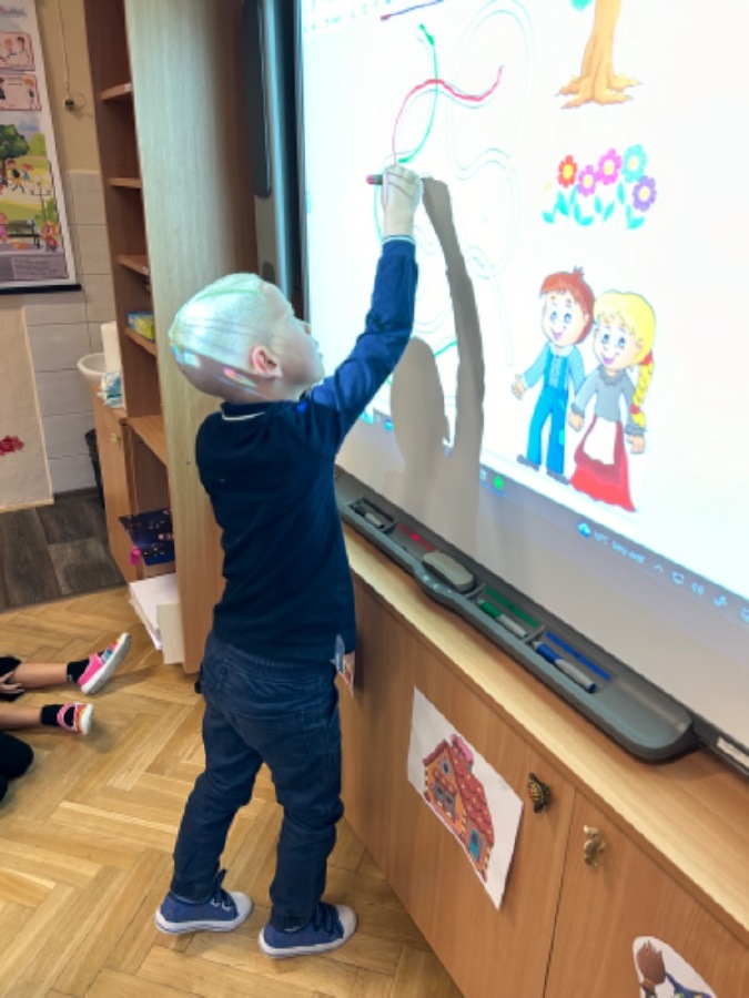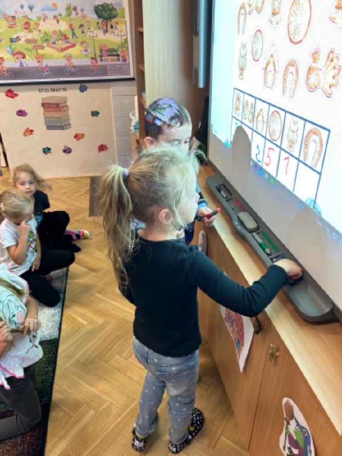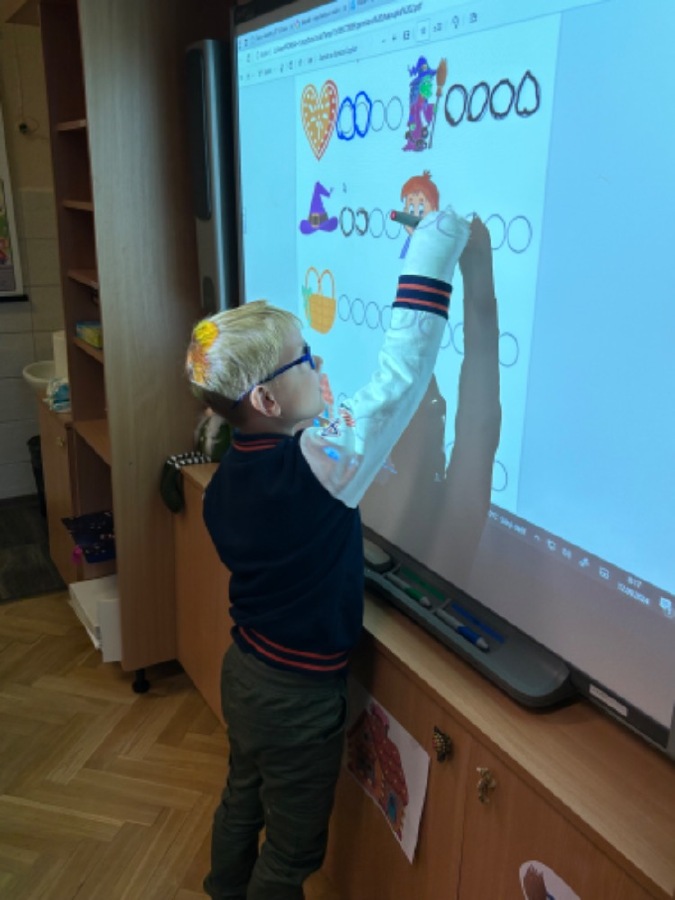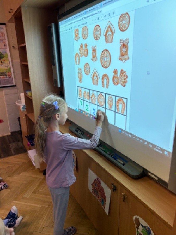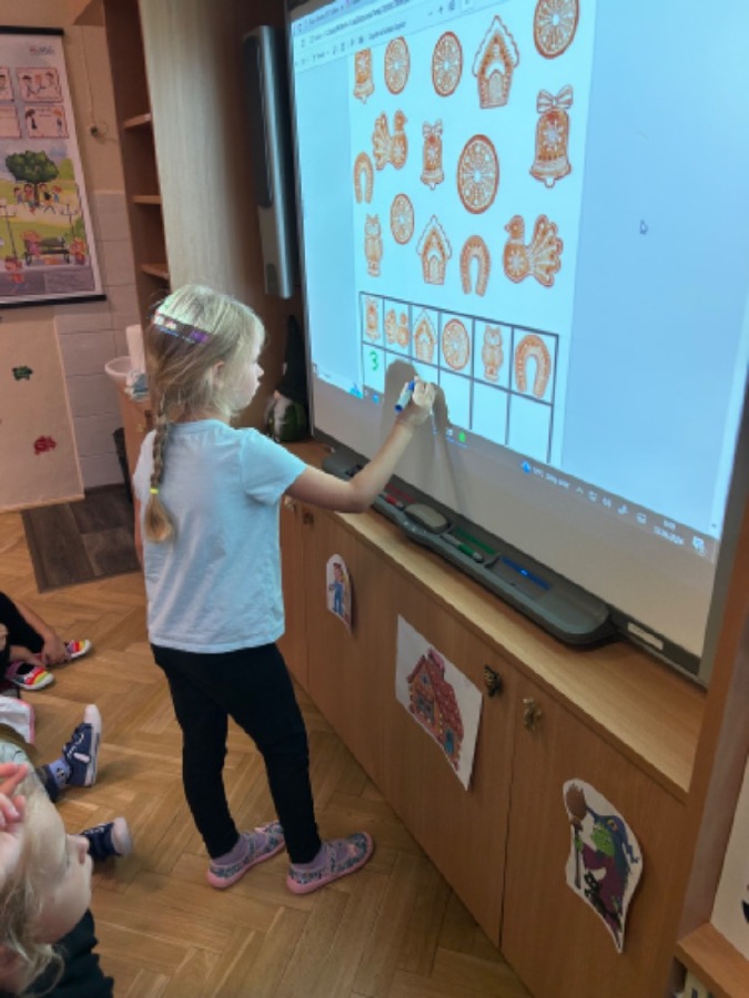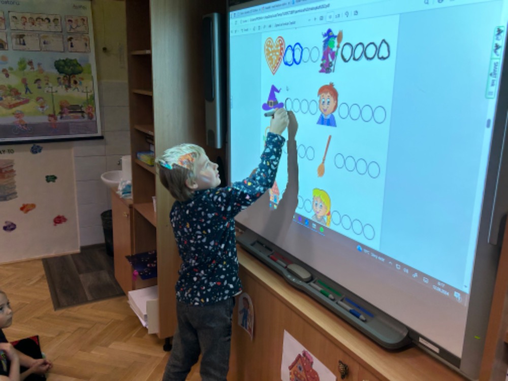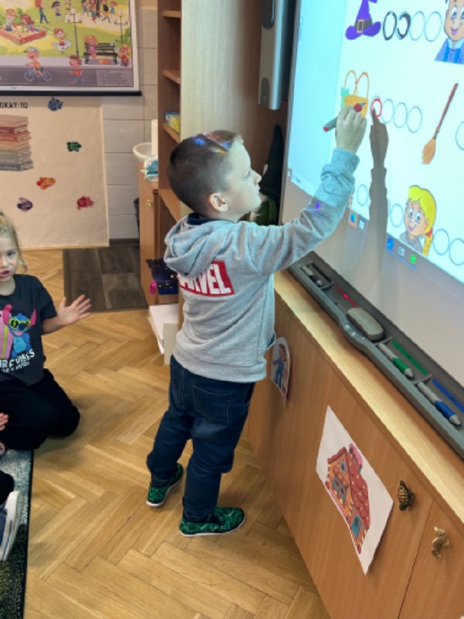 Dnes jsme si připomněli pohádku Perníková chaloupka. Společně jsme si ji převyprávěli za pomoci obrázkové osnovy. Pak už na nás čekaly jednotlivé úkoly. Děti pomáhaly najít cestu Jeníčkovi a Mařence od ježibaby zpět domů, určovaly velikost záporné pohádkové postavy, zároveň si procvičily orientaci, počítaly jednotlivé perníčky, vytleskávaly slova a označovaly počet jejich slabik, doplňovaly neúplné obrázky, vyznačovaly motivy patřící k dnešnímu tématu, to vše u interaktivní tabule. V lavici pak v pracovním listě děti bystřily svůj postřeh a zrakové vnímání, také si procvičovaly grafomotoriku. Také jsme se naučili hru Já mám, kdo má?. Ta se nám moc líbila a pro úspěch jsme ji hráli 2x. V závěru jsme si ještě v aplikaci Wordwall upevnili základní pojmy z pohádky.