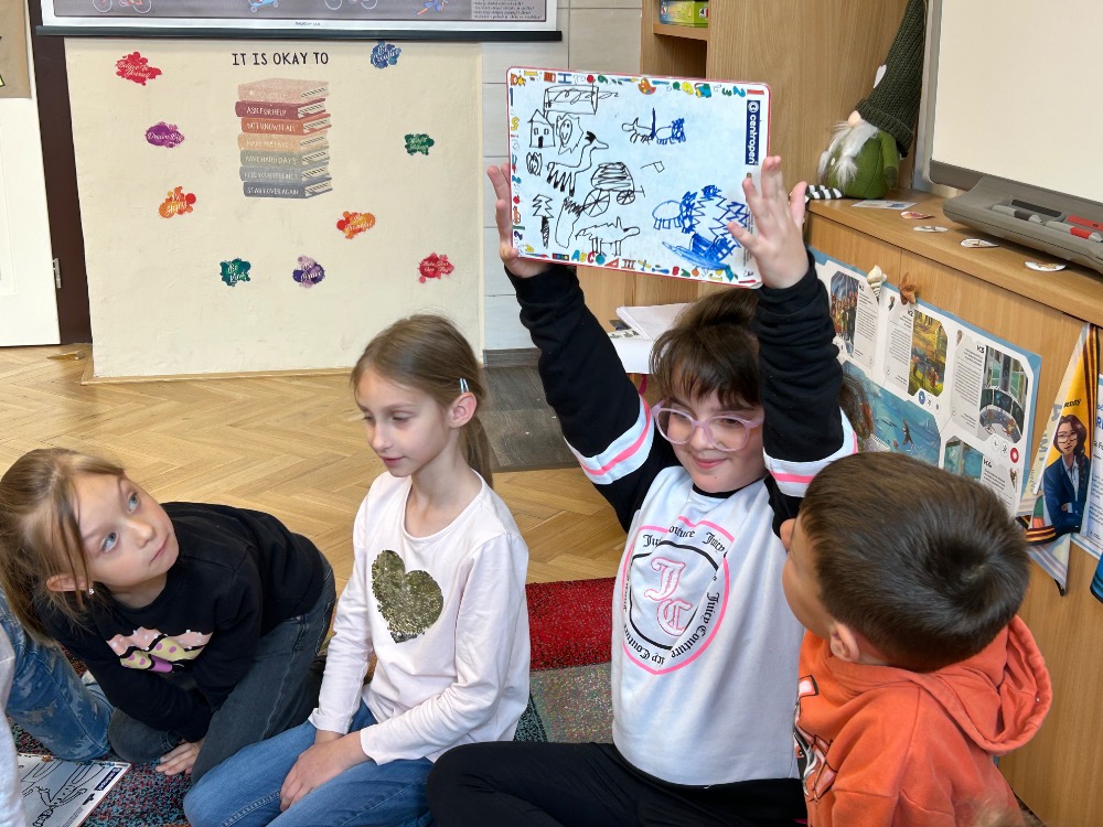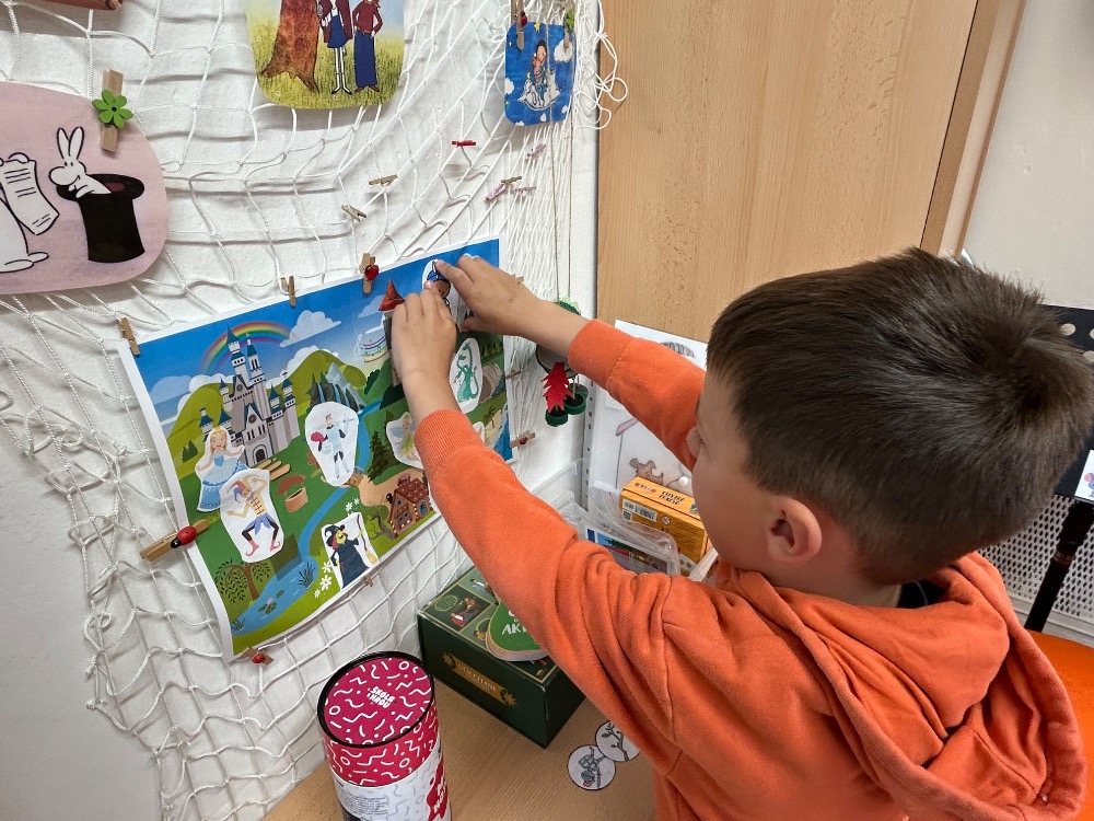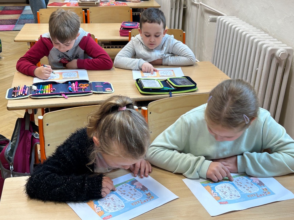 Ve čtvrtek děti z 1.B absolvovaly předposlední kolo jejich celoročního putování napříč pohádkovým světem. Protože už všichni čteme, úkol byl jasný. Každá dvojice četla stejnou pohádku zpracovanou tzv. malovaným čtením.